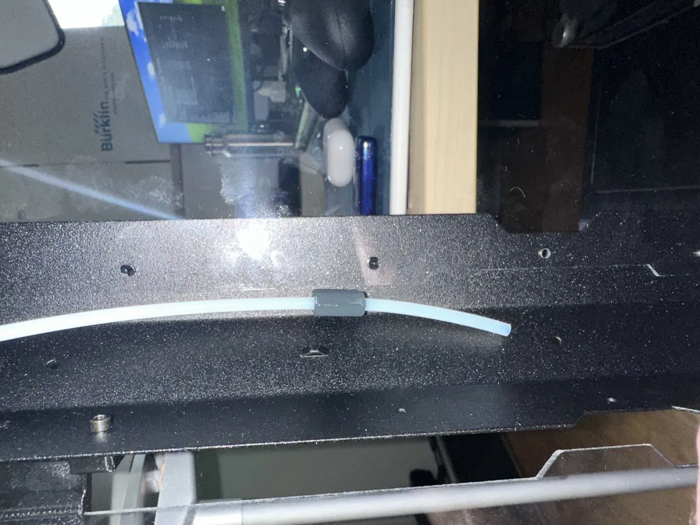 Tôi đã thêm một ống PTFE cấp trên vào hộp chứa của mình để có thể in trực tiếp từ máy sấy. Tôi cũng để lại giá đỡ cuộn và hướng dẫn filament gốc trong hộp chứa để thỉnh thoảng in PLA. Khi tôi muốn đổi filament, tôi chỉ cần dỡ một cái, đổi ống và đi - nhưng điều đó để lại một ống treo lùng bùng trong hộp chứa, điều mà tôi thực sự không thích.