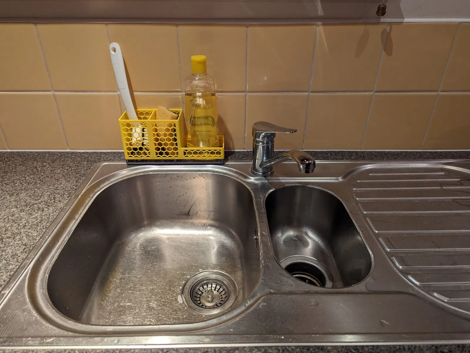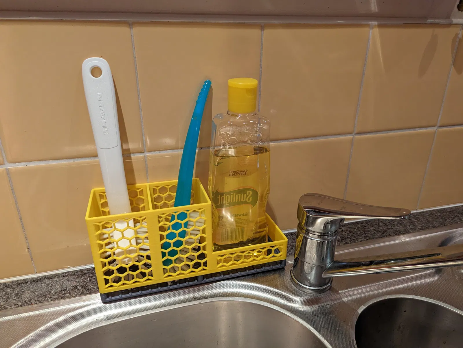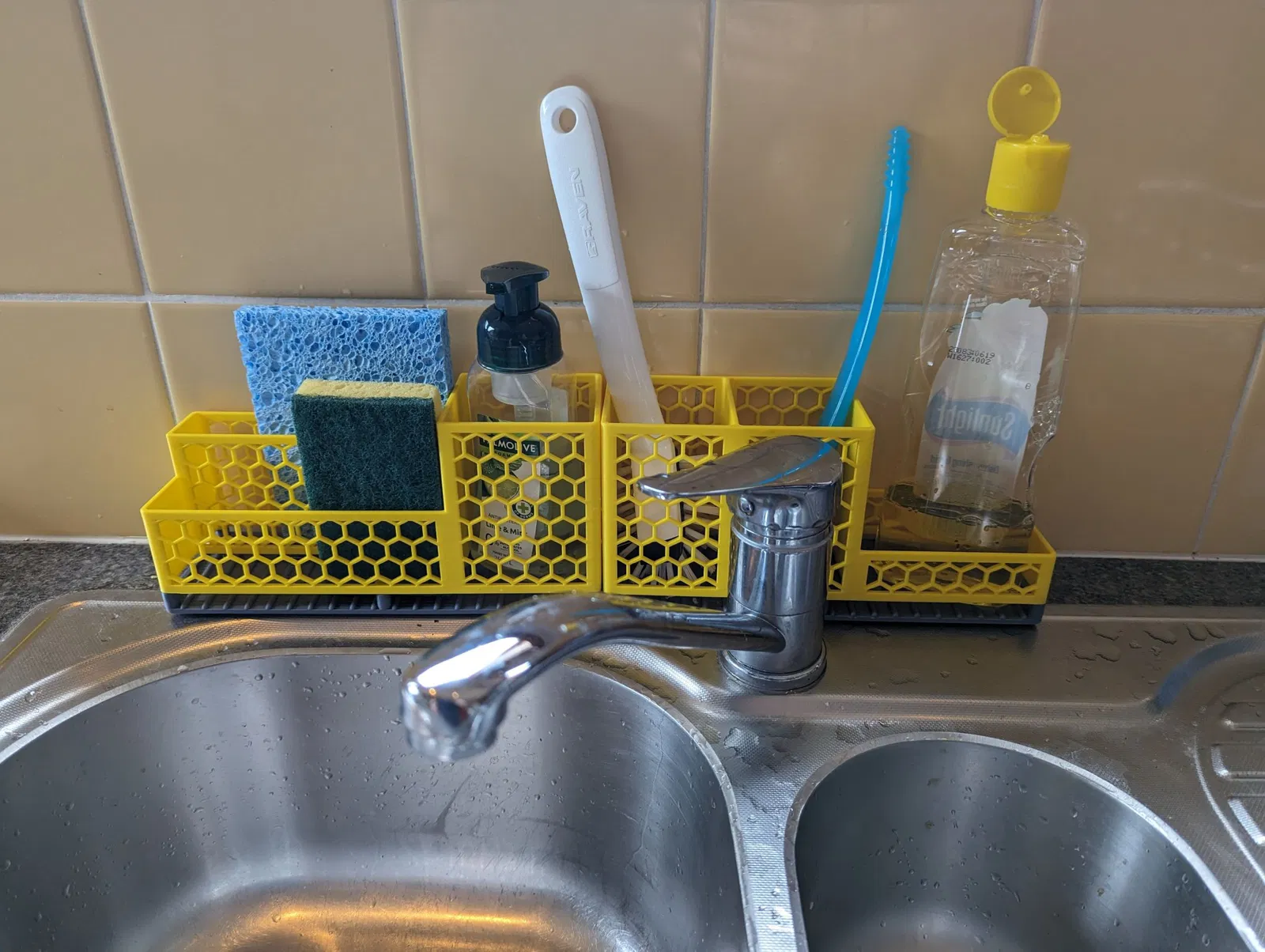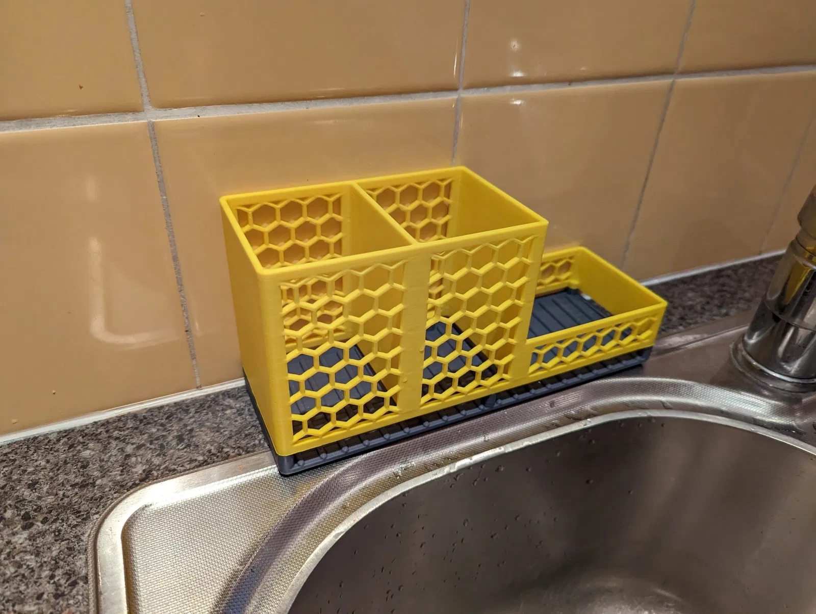 Nhà tổ chức bồn rửa nhà bếp với khay nhỏ giọt tích hợp để nước chảy trở lại vào bồn rửa (không bao giờ cần phải được làm trống).