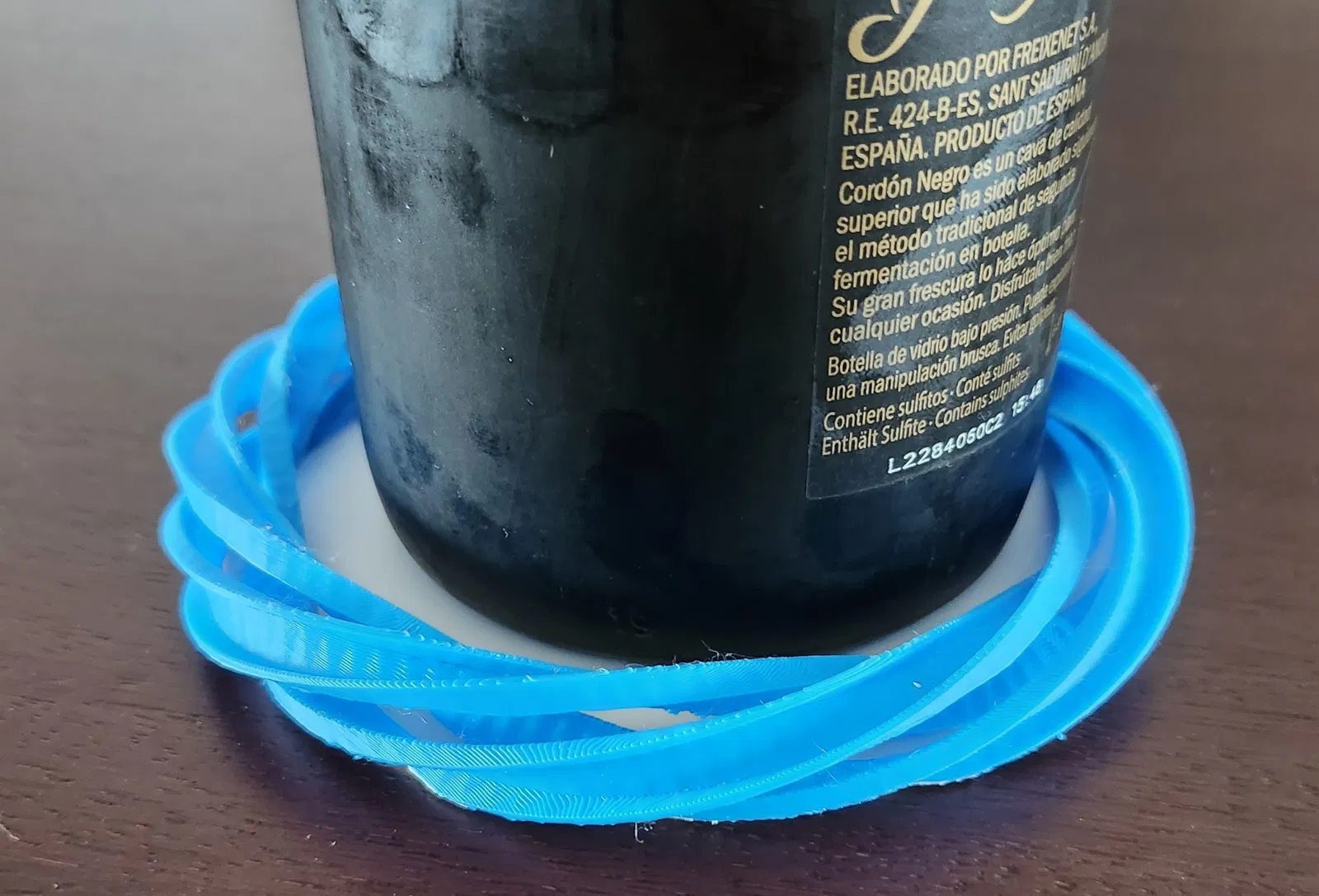 Cái coaster quá mức này có kích thước lớn hơn dự kiến (mở 98mm), tôi gợi ý giảm tỷ lệ x và y xuống 90-95% trong slicer, tùy thuộc vào chai của bạn.