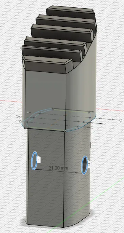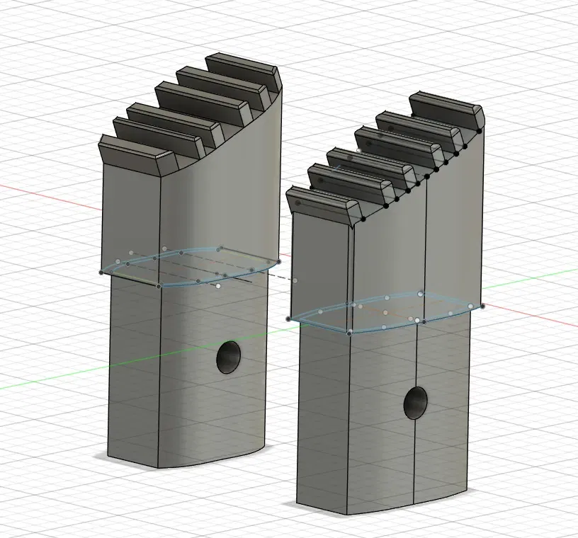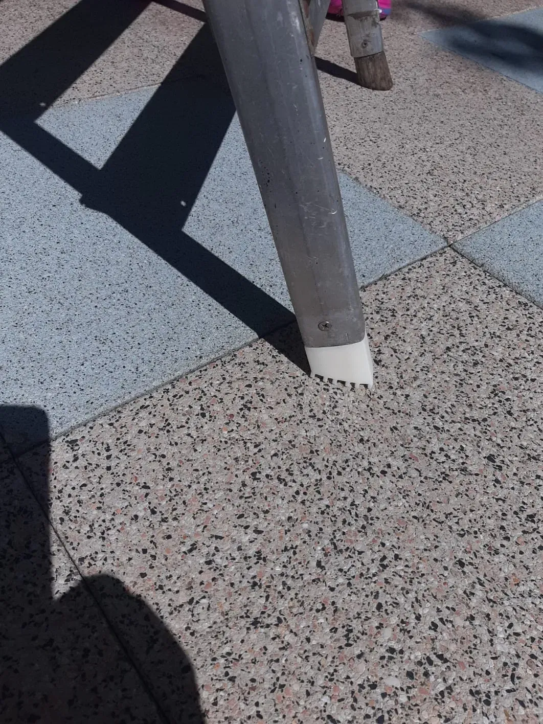 Hai chân thay thế cho một cái thang nhôm với độ sâu cắm là 40 mm và chiều rộng lần lượt là 19 mm và 21 mm.