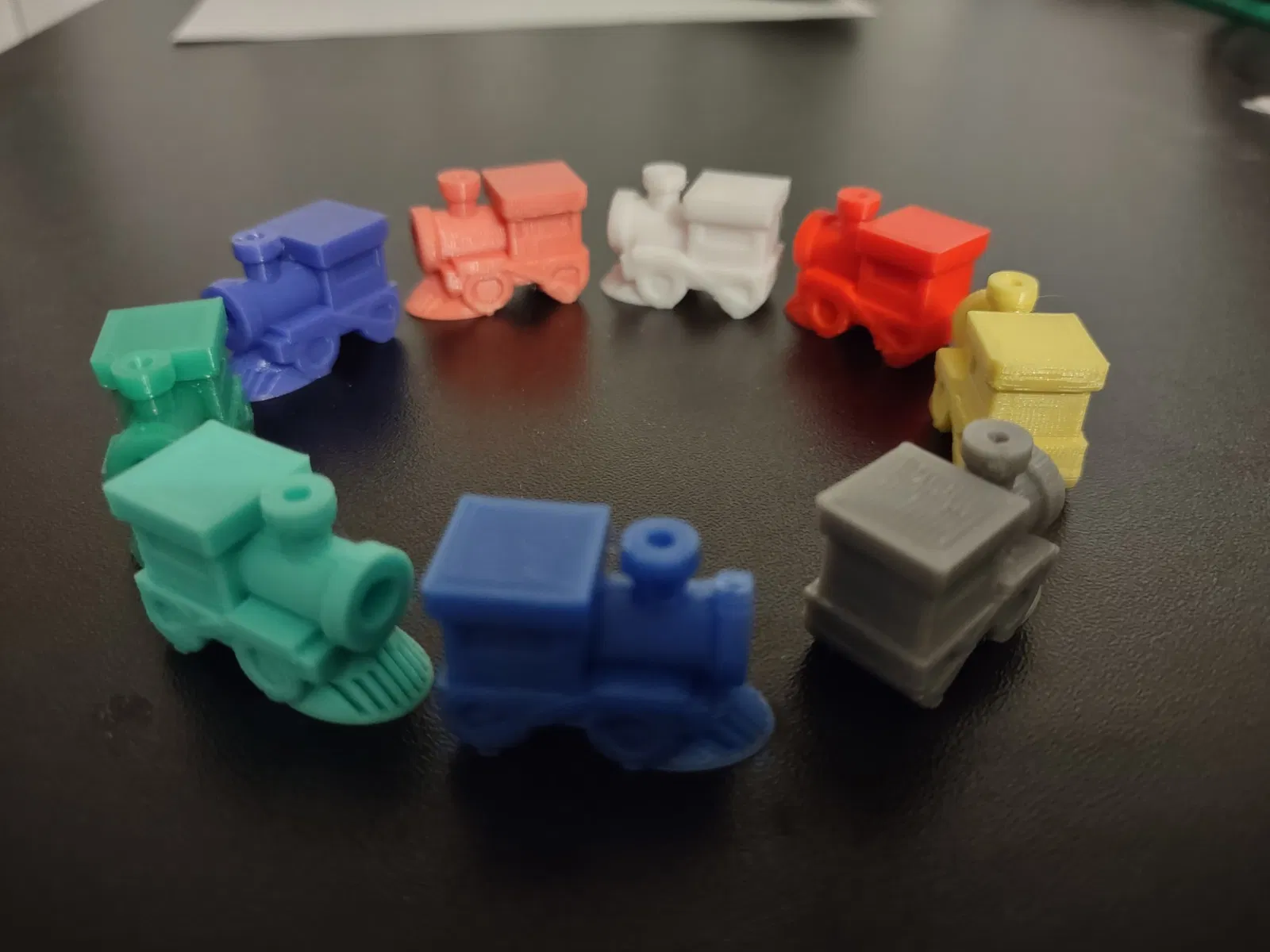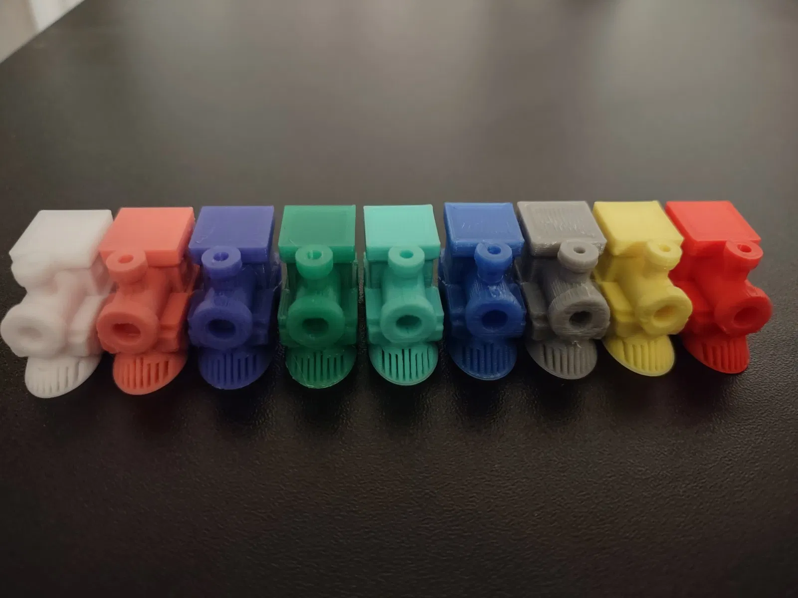 Đây là một động cơ thay thế cho trò chơi Dominos nổi tiếng “Mexican Train”. Vợ tôi không hài lòng với các động cơ được đúc bằng nhựa mà đi kèm với bộ mà cô ấy đã mua, vì vậy tôi đã thiết kế động cơ này để thay thế cho những mảnh nhỏ, kém chất lượng đó. Tôi thích thiết kế của Eclsnowman, đặc biệt là sự tích hợp của bộ bảo vệ chổi vào bánh trước và cách mà nó có độ tiếp xúc bề mặt tốt để giúp bản in bám vào bàn in. Mặc dù tôi đánh giá cao cách Eclsnowman đã làm mềm các cạnh ở mọi góc của thiết kế của mình, nhưng theo ý kiến của vợ tôi, sản phẩm in ra thiếu chi tiết. Ở quy mô của những mảnh này, không có máy in nào của tôi gặp khó khăn với những phần nhô ra, vì vậy tôi nghĩ rằng các cạnh vát là không cần thiết. Tôi đã in những cái này ở độ phân giải. 2mm với 100% độ đặc để tạo cho chúng một chút trọng lượng. Tôi đã tích hợp bộ bắt bò với bánh trước như mô hình của Eclsnowman, nhưng kéo dài nó về phía trước và thêm một cấu trúc rộng dài kết nối bánh trước và bánh sau để tăng diện tích tiếp xúc của các lớp dưới cùng, giúp những cái này dễ in hơn trên kính trần, đó là bề mặt trên hầu hết các máy in của tôi. Kết quả cho phép tôi in cái này trên nhiều máy khác nhau với các màu khác nhau mà không cần thay đổi nguyên liệu, và không cần một vành hay hỗ trợ nào. Tôi dự định in trung tâm của Eclsnowman chính xác như cách anh ấy đã làm, sử dụng màu đen làm nền và bạc lụa cho các đường ray vì nó đẹp hơn nhiều so với trung tâm bằng ván ép tồi tệ mà đi kèm với bộ của vợ tôi. Dù bạn có quyết định sử dụng động cơ của tôi hay không, hãy chắc chắn kiểm tra mô hình của Eclsnowman trước và hãy cho anh ấy một lượt thích: