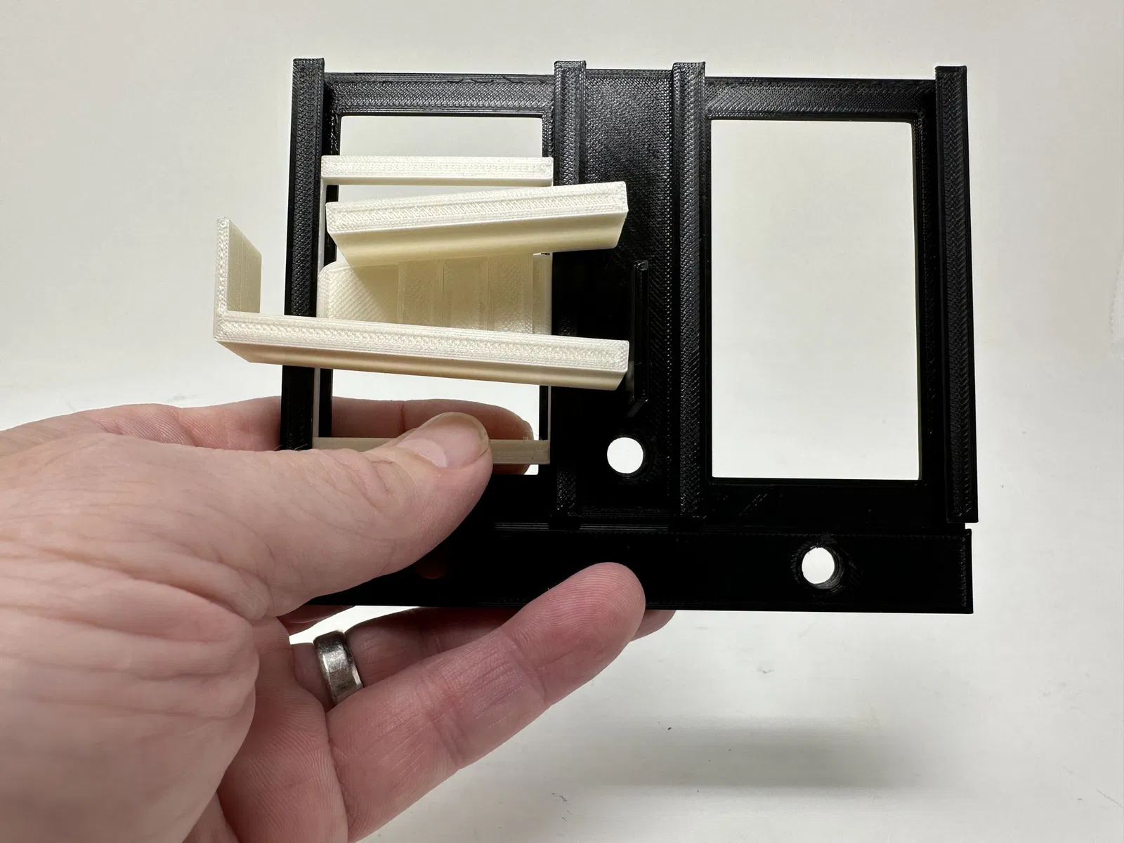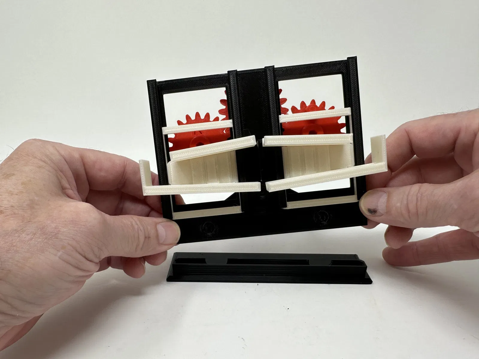 Tất cả các Marblevator mà tôi đã thiết kế cho đến nay đều có cơ chế để di chuyển một viên bi từ cuối đường ray đến đầu đường ray. "Marblevator, Tracks" tiếp cận theo một cách khác ở chỗ các đường ray tự di chuyển đồng bộ với nhau để cuối của một đường ray gặp đầu của một đường ray thứ hai, cho phép viên bi chuyển sang đầu của đường ray thứ hai, sau đó quá trình lặp lại. Để đồng bộ hóa các đường ray, tôi đã sử dụng một bộ điều khiển tốc độ động cơ trong thiết kế của mô hình. Những điều chỉnh tinh tế đối với bộ điều khiển tốc độ có thể được thực hiện để viên bi di chuyển một cách liền mạch từ đường ray này sang đường ray khác. Được thiết kế bằng Autodesk Fusion 360, cắt bằng Ultimaker eSlicer 4. 12. 1 và in 3D bằng PLA trên Ultimaker S5s và Ultimaker 3e.