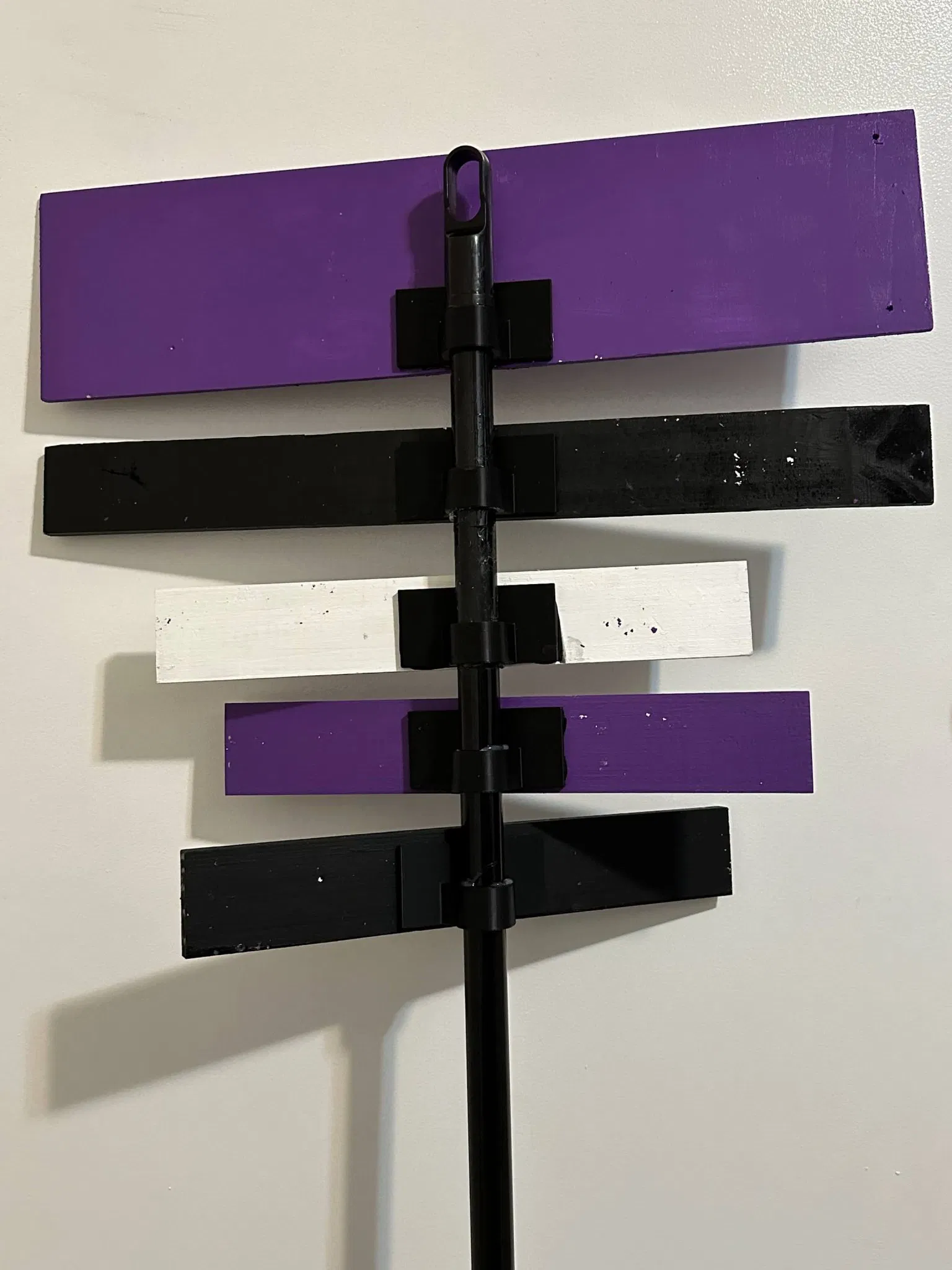 Nó vừa khít với tay cầm chổi mà chúng tôi có trong nhà. Nó có một lỗ ở giữa 22mm. Chúng tôi chỉ cần dán bảng hiệu vào đó bằng keo nóng và dán nó ở vị trí thẳng đứng trên cán chổi.
