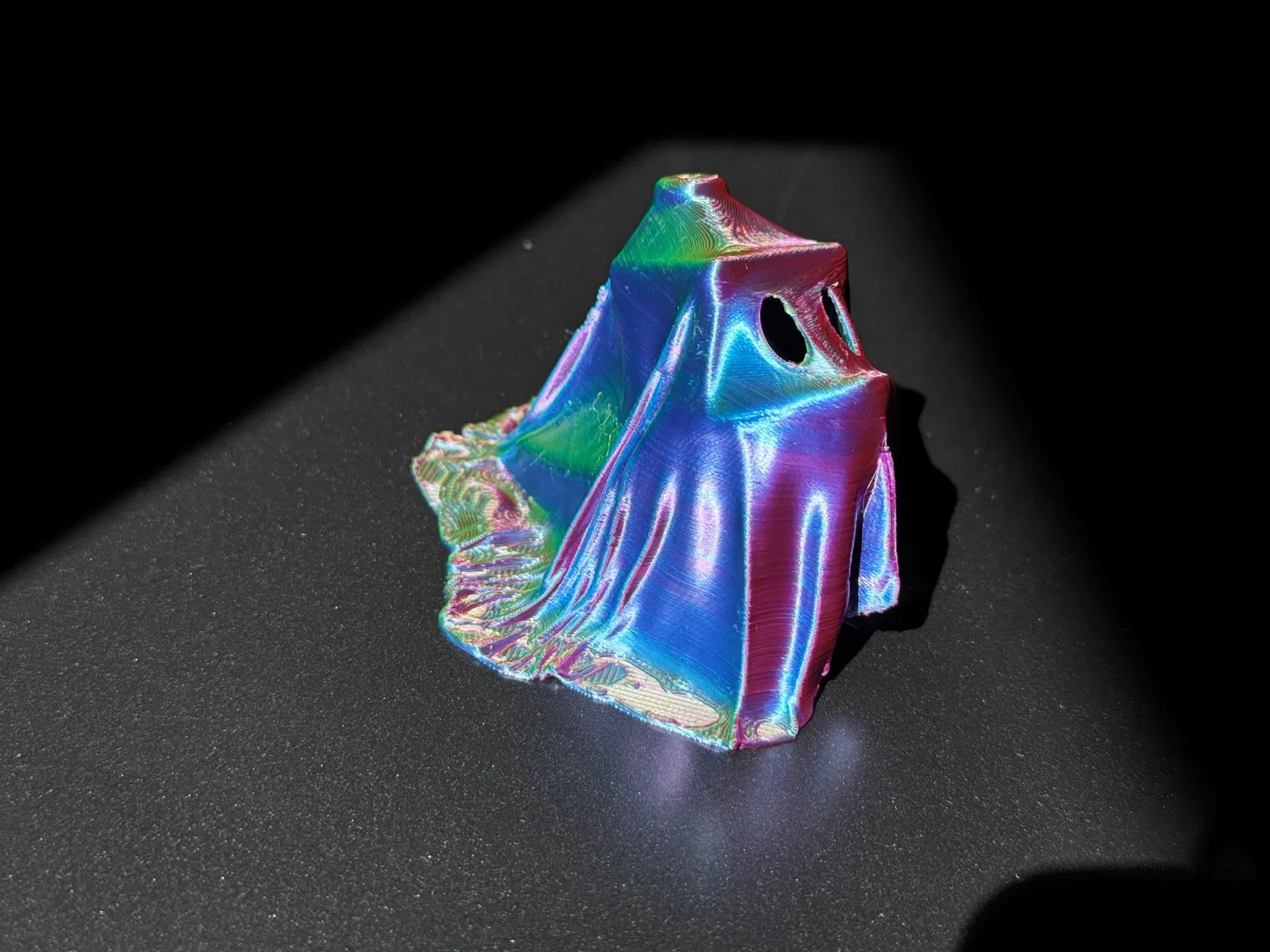 Booenchy in ở tốc độ nhanh rùng rợn, đảm bảo bạn sẽ có bộ trang phục ma Benchy của mình sẵn sàng để ám ảnh trong thời gian ngắn. Điều gì còn tốt hơn nữa? Bạn sẽ không cần bất kỳ hỗ trợ nào để in Booenchy, làm cho toàn bộ quá trình trở nên dễ dàng. Nhưng đây mới là nơi niềm vui thực sự bắt đầu: Booenchy trông tuyệt đẹp khi in bằng các loại filament Silk hoặc PLA nhiều màu, vì những vật liệu này thể hiện những nếp gấp của vải trong tất cả vẻ đẹp của nó. Tất nhiên, màu trắng cổ điển là một lựa chọn vượt thời gian hoàn hảo nắm bắt được bản chất của một hiện tượng ma quái.