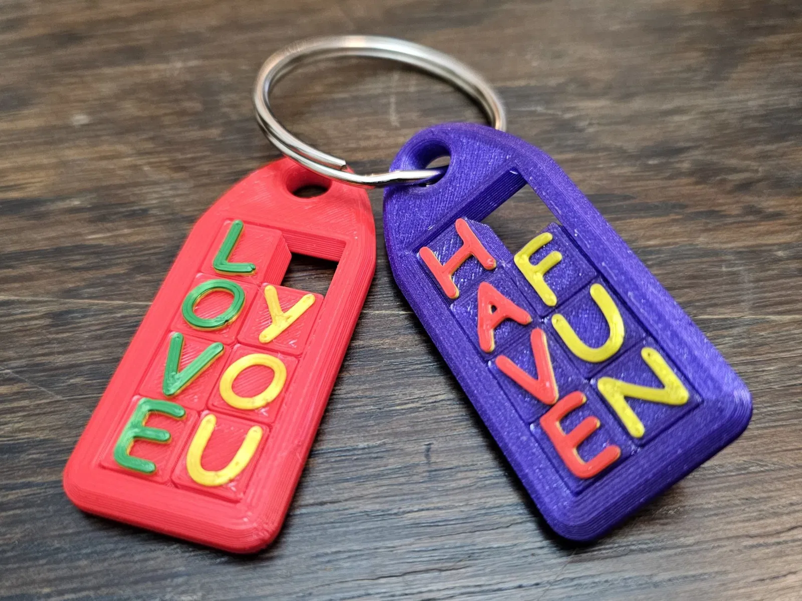 Thể hiện tình yêu hoặc tâm trạng của bạn với chiếc móc khóa lạ mắt này. Chọn một văn bản nhất định hoặc tạo riêng của bạn.
