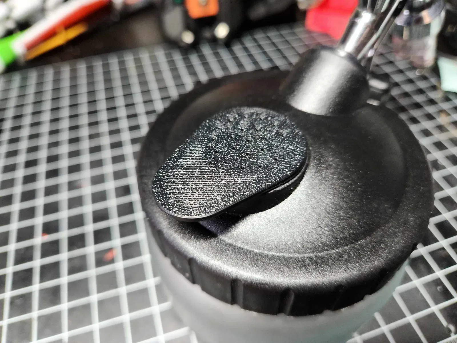 Tôi rất khó chịu khi nắp cho phần lọc trong bình làm sạch súng phun của tôi lại rơi ra chỉ vì độ đàn hồi của miếng xốp bên dưới. Tôi đã thiết kế nắp này với độ chính xác chặt chẽ hơn với bình nhưng vẫn đủ dễ dàng để tháo nắp ra.