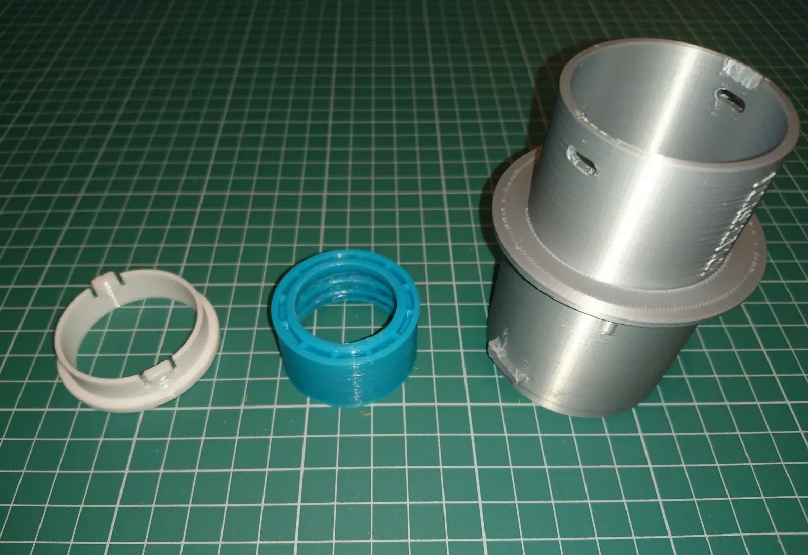 Màu sắc và vật liệu filament: PLA bóng màu xám, PLA+ màu xanh, PETG màu trắng