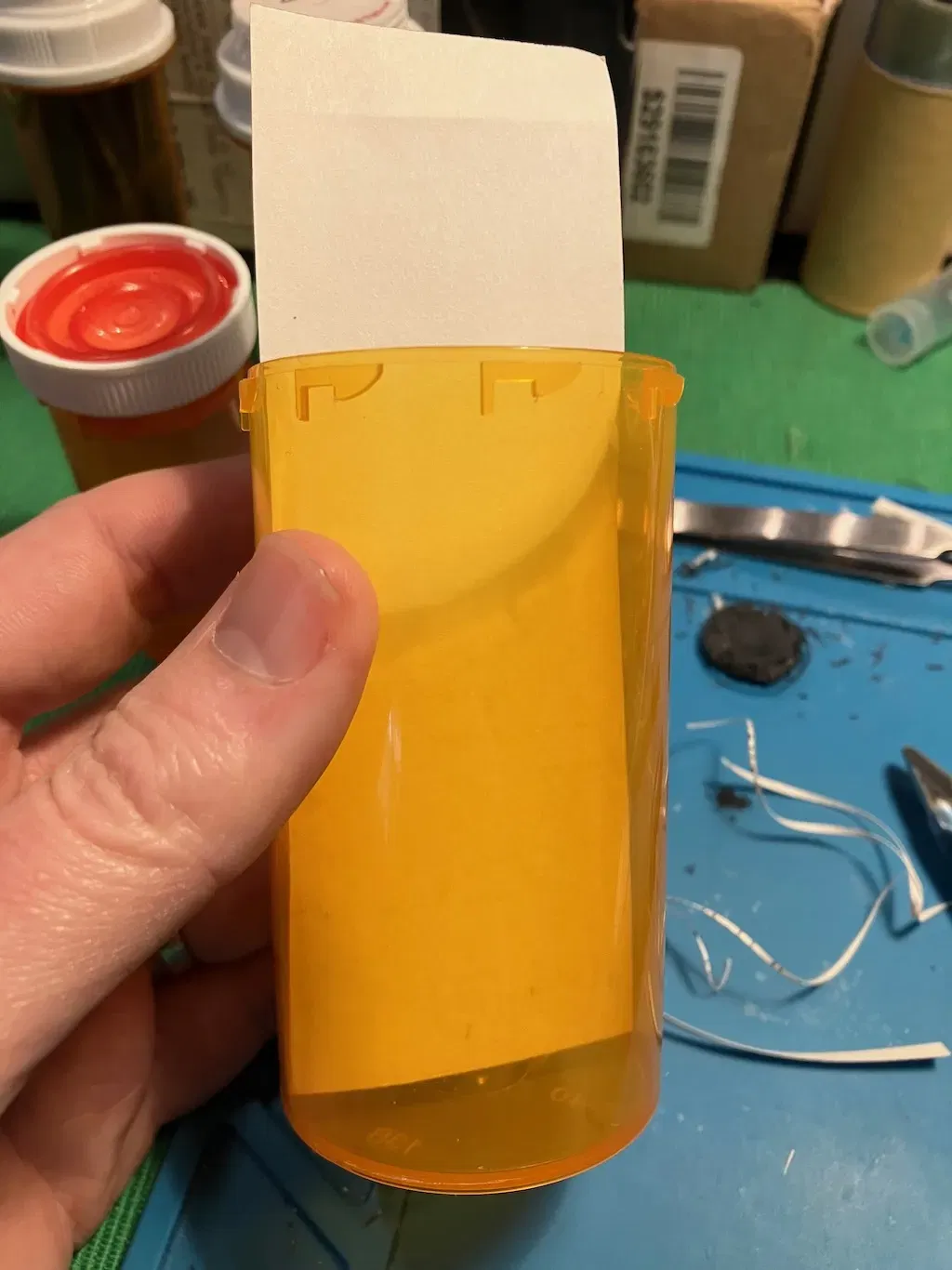 Đây là đường kính trong của chai thuốc ở độ cao mà bạn muốn bộ tổ chức đạt tới. Bạn có thể sử dụng một cặp thước kẹp để đo điều này, nhưng cắt một mảnh giấy cũng hoạt động.