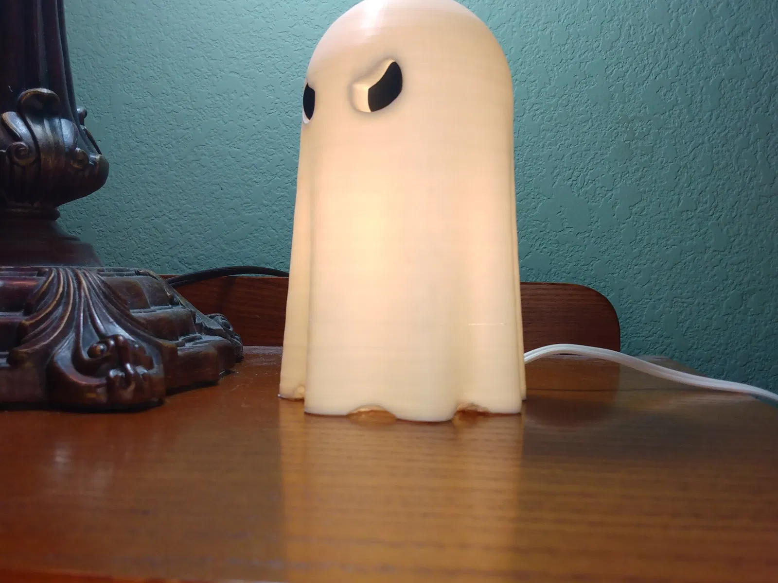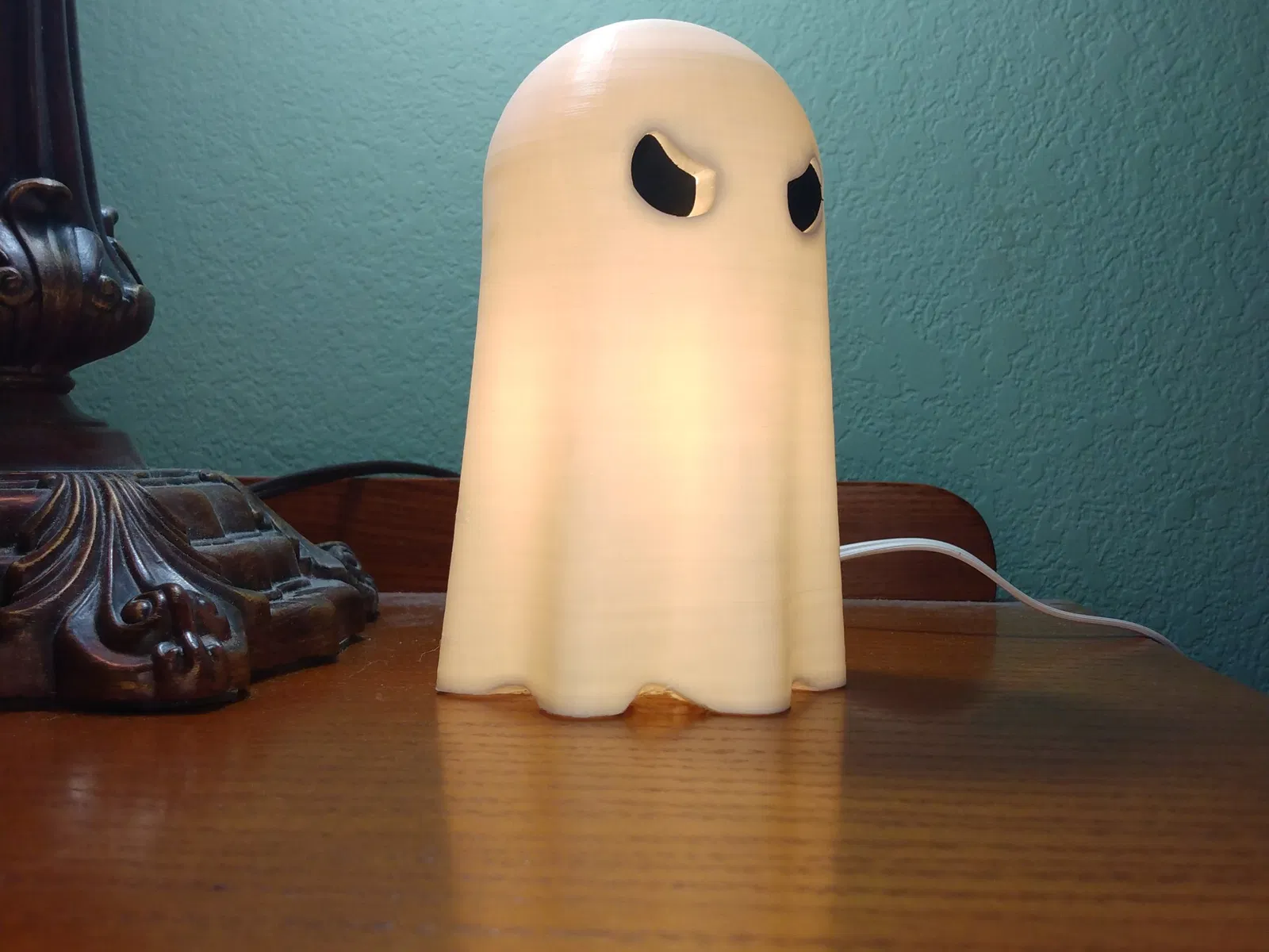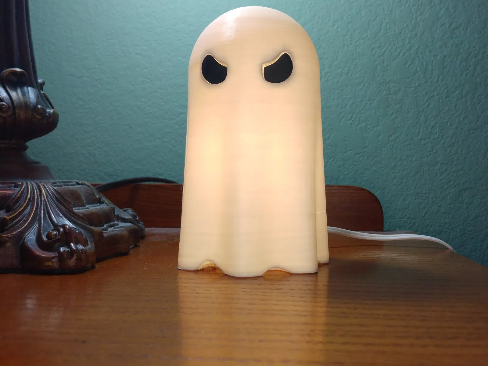 Đèn ma này được in bằng filament Polymaker Polylite White PLA, có khả năng truyền sáng tốt. Hầu hết các loại filament trắng đều hoạt động tốt, đặc biệt là các filament trắng thường được sử dụng để làm lithophanes, chẳng hạn như eSun white PLA+.