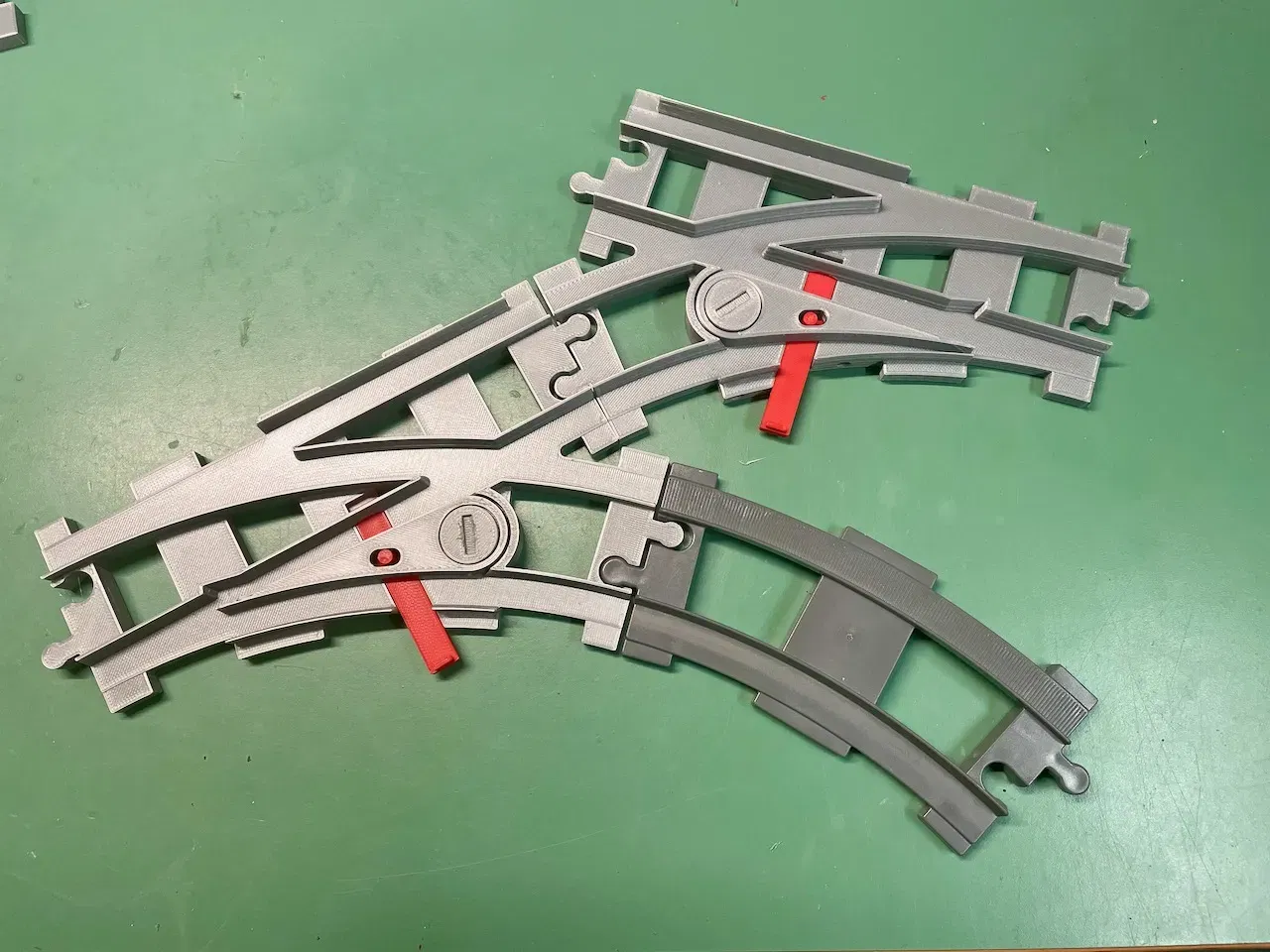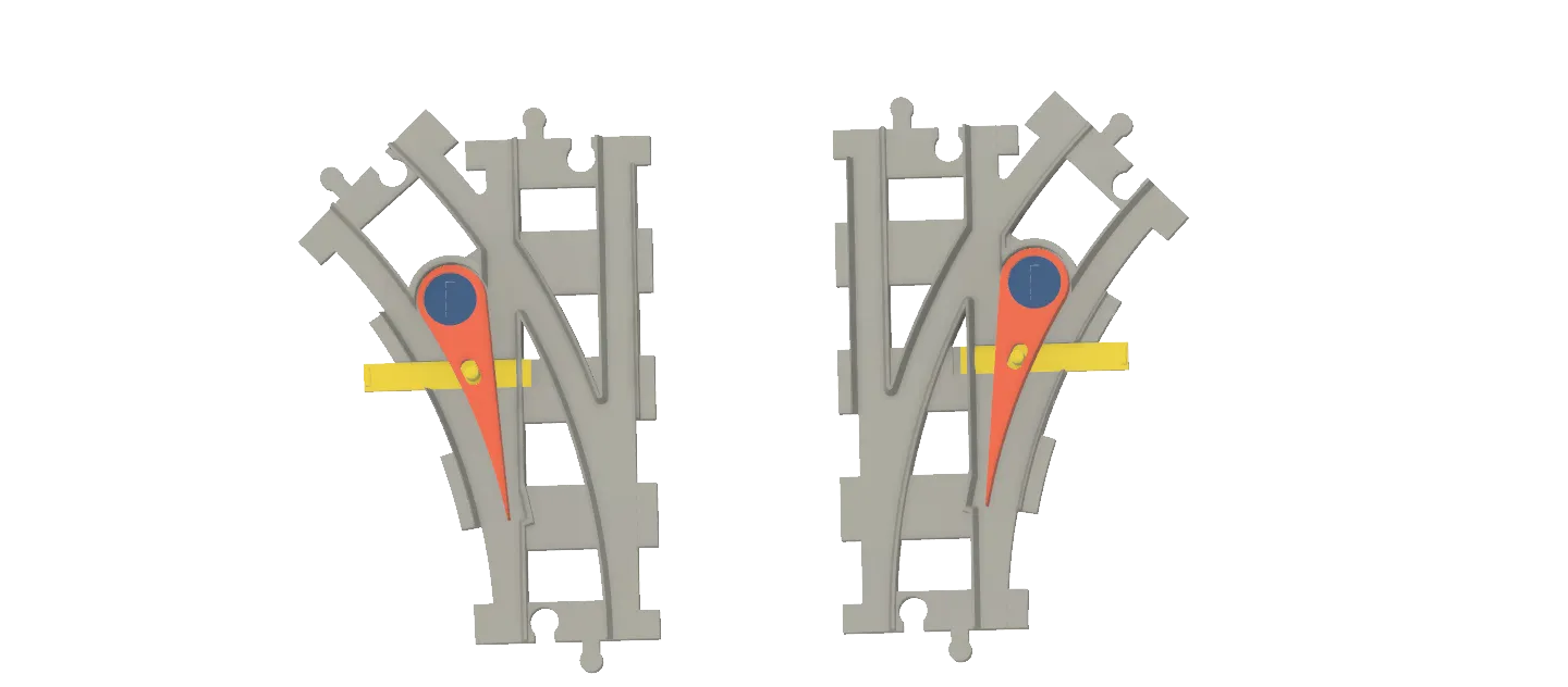 Cập nhật 2023-10-02 Tôi đã sửa đổi con vít, làm cho nó mỏng hơn một chút (-0.1 mm) để bù đắp cho các độ dung sai, tôi chưa in nó tự mình, vì vậy khi bạn làm, xin vui lòng cho phản hồi. Cũng đã tải lên tệp Fusion 360 đã sửa đổi. Cập nhật 2023-02-05: Tôi đã sửa đổi ren ở đường ray bên phải. Do việc phản chiếu, ren đã bị sai. Cập nhật 2022-11-24 Tôi đã sửa đổi con vít, để tạo ra sự vừa vặn tốt hơn. Khi cần thiết, bạn có thể cắt lại ren. Đây là một bản remix của https://www.f3d.vn/3d-model/44573-cong-tac-duong-sat-duplo-cho-mo-hinh-xe-lua-lego Tôi đã cải thiện việc giữ lưỡi dao để nó không rơi ra khi bạn lật đường ray lên. Cũng đã cải thiện các độ dung sai trên tay cầm/cánh tay. Đã làm cho các phần kết nối có cùng chiều cao như các đường ray Duplo tiêu chuẩn. Đã thêm một đáy công tắc bên phải và lưỡi dao. Tất cả các phần cho một công tắc bên phải và một công tắc bên trái sẽ vừa vặn trên bàn in của MK3S+. Tôi đã cung cấp gcode cho từng phần. Con vít và tay cầm cần được in hai lần khi bạn muốn cả hai công tắc bên trái và bên phải. Đối với những người quan tâm, tôi đã thêm tệp Fusion 360. (Cảnh báo, tôi chỉ là một người nghiệp dư, quá trình thiết kế diễn ra nhanh chóng và không hoàn hảo….)