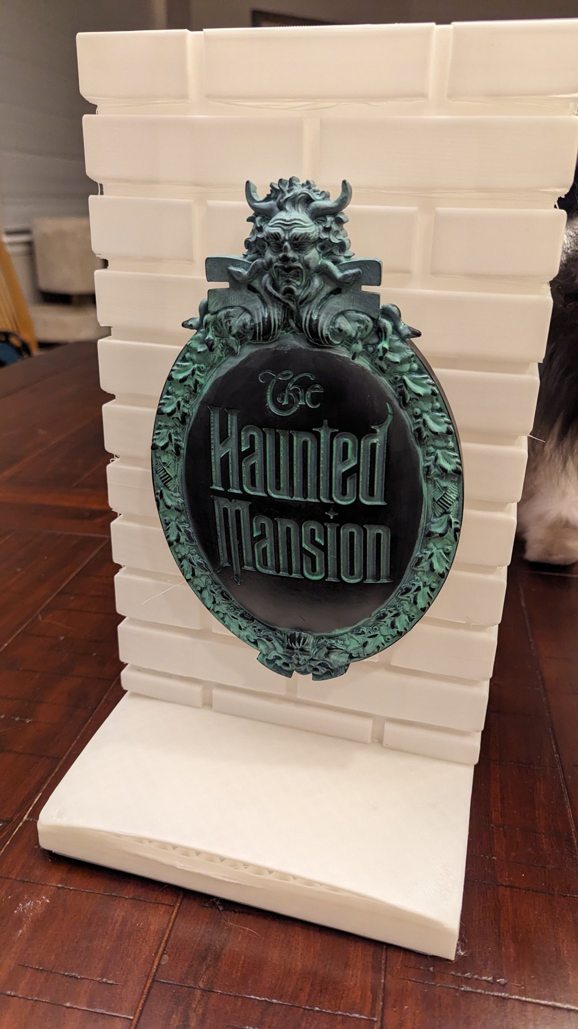 Biển hiệu của ngôi nhà ma ám và chân đế cho biển hiệu Spirit Halloween HM. Spirit Halloween đang bán một biển hiệu bằng nhựa rất đẹp năm nay, nhưng không có chân đế. Nó có các giá treo tường tích hợp. Vợ tôi muốn một chân đế riêng và cô ấy nghĩ chỉ cần một cái gì đó để giữ cho nó đứng thẳng, nhưng tôi quyết định thử tái hiện cột ở Disneyland. Đỉnh cột vẫn đang in, vì vậy khi nó hoàn thành tôi sẽ đăng ảnh nhưng cột và chân đế đã hoàn thành. Cô ấy rất hài lòng với kết quả này!