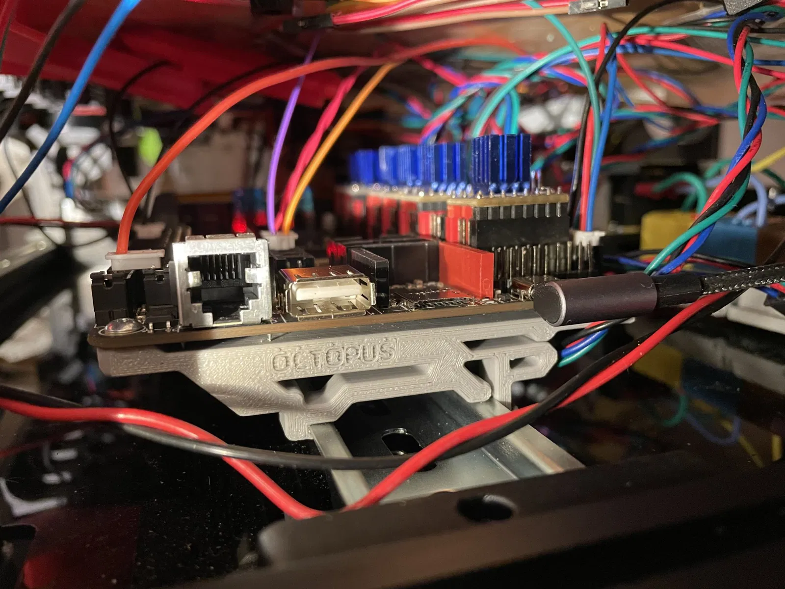 Các clip gắn DIN cho Octopus/Octopus Pro. Sử dụng ít nhựa hơn phiên bản Voron Stock.
