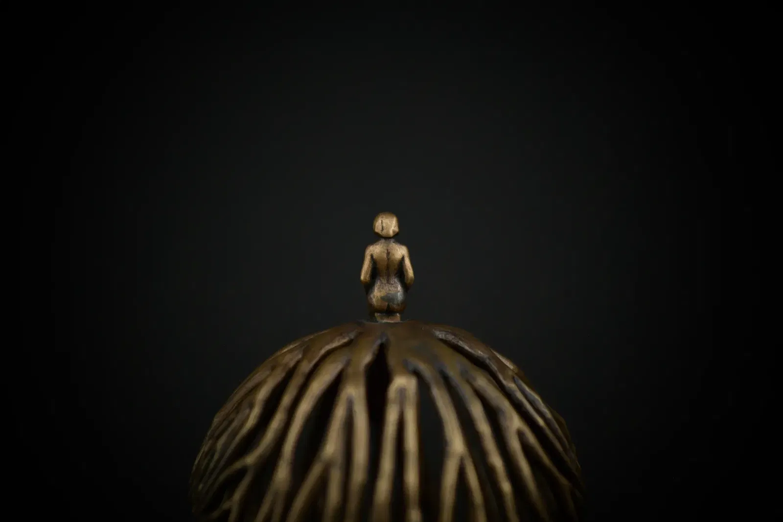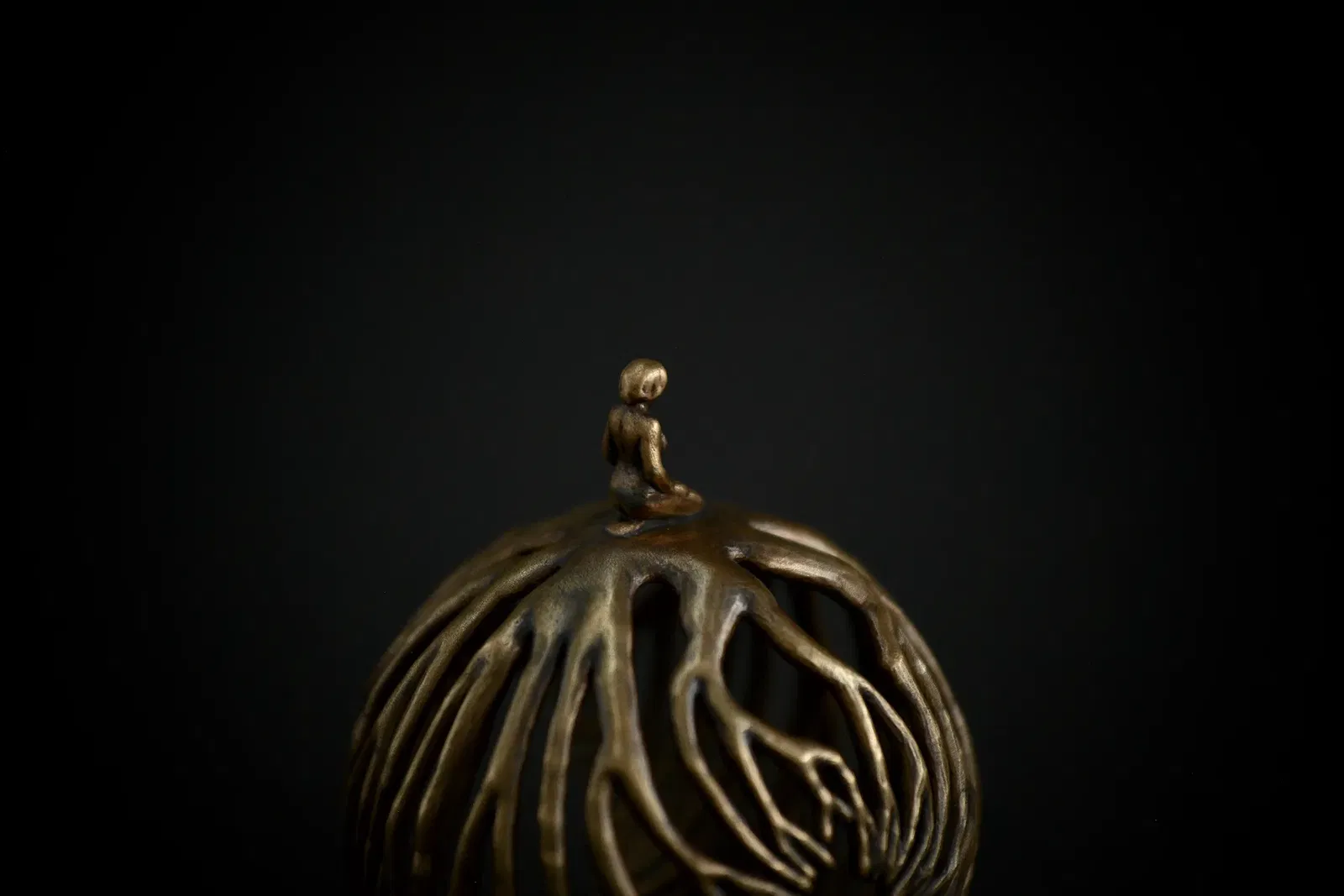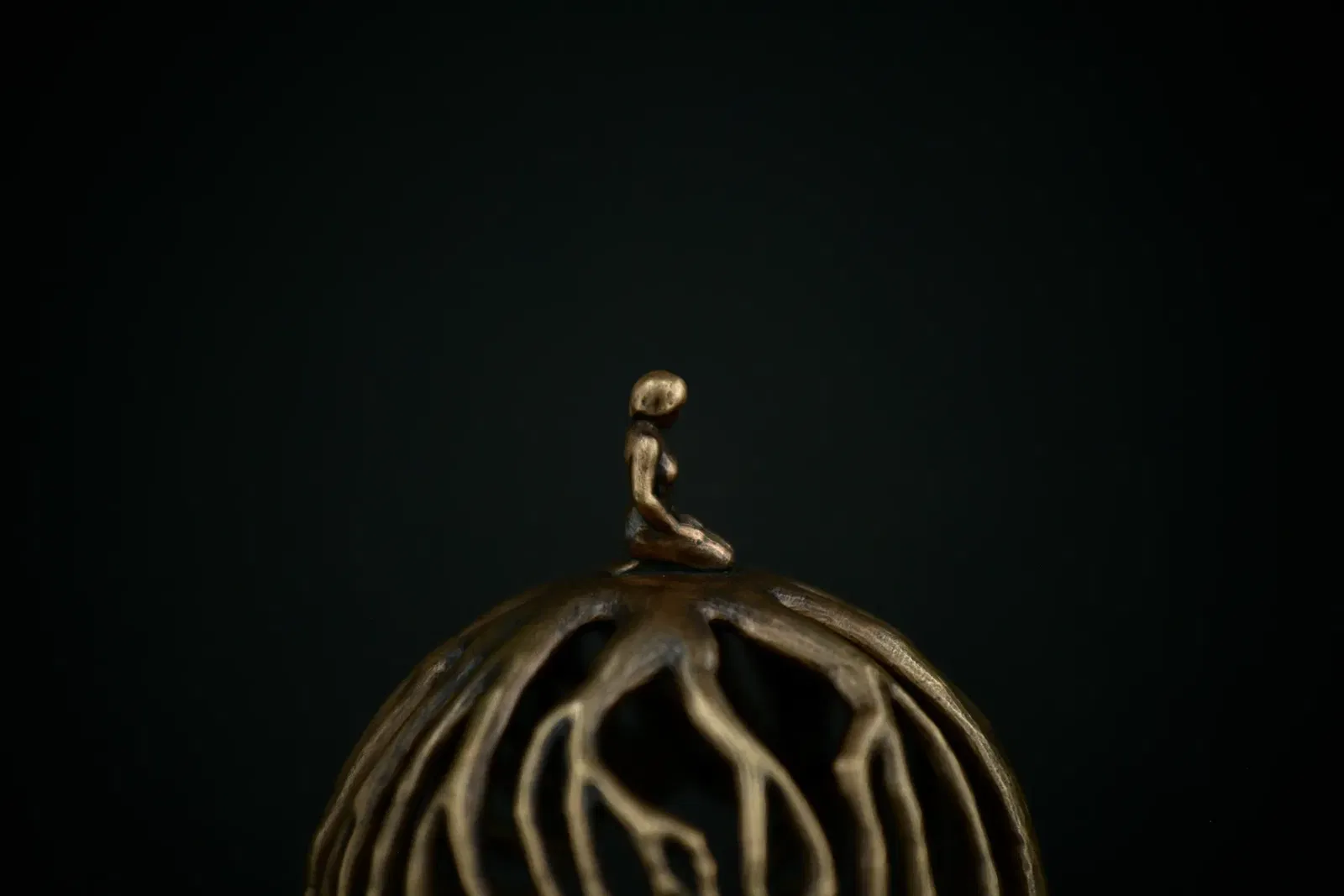 Người phụ nữ thiền định với rễ cây bằng đồng