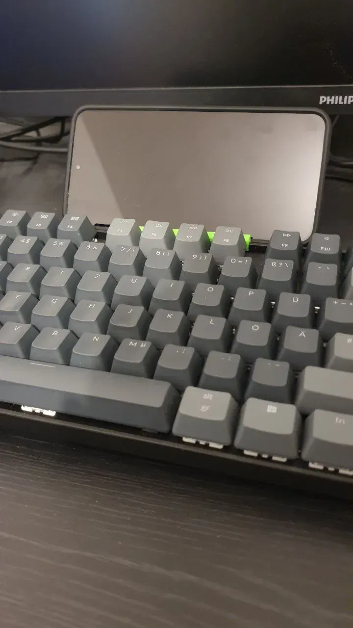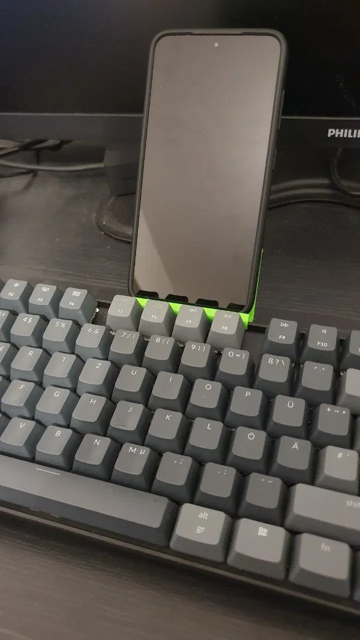 Một giá đỡ smartphone đơn giản để dễ dàng gắn và tháo trên bàn phím Keychron K8. Có thể rằng giá đỡ này cũng phù hợp với các bàn phím Keychron K-series khác, nhưng tôi không thể xác minh điều này, vì hiện tại tôi chỉ sở hữu K8. Tôi đã in giá đỡ bằng PETG, có thể PLA đủ ổn định. Tuy nhiên, tôi cũng không thể xác nhận điều đó một cách chắc chắn. Điện thoại có thể được đặt trong giá đỡ ở cả chế độ panorama và chế độ chân dung.
