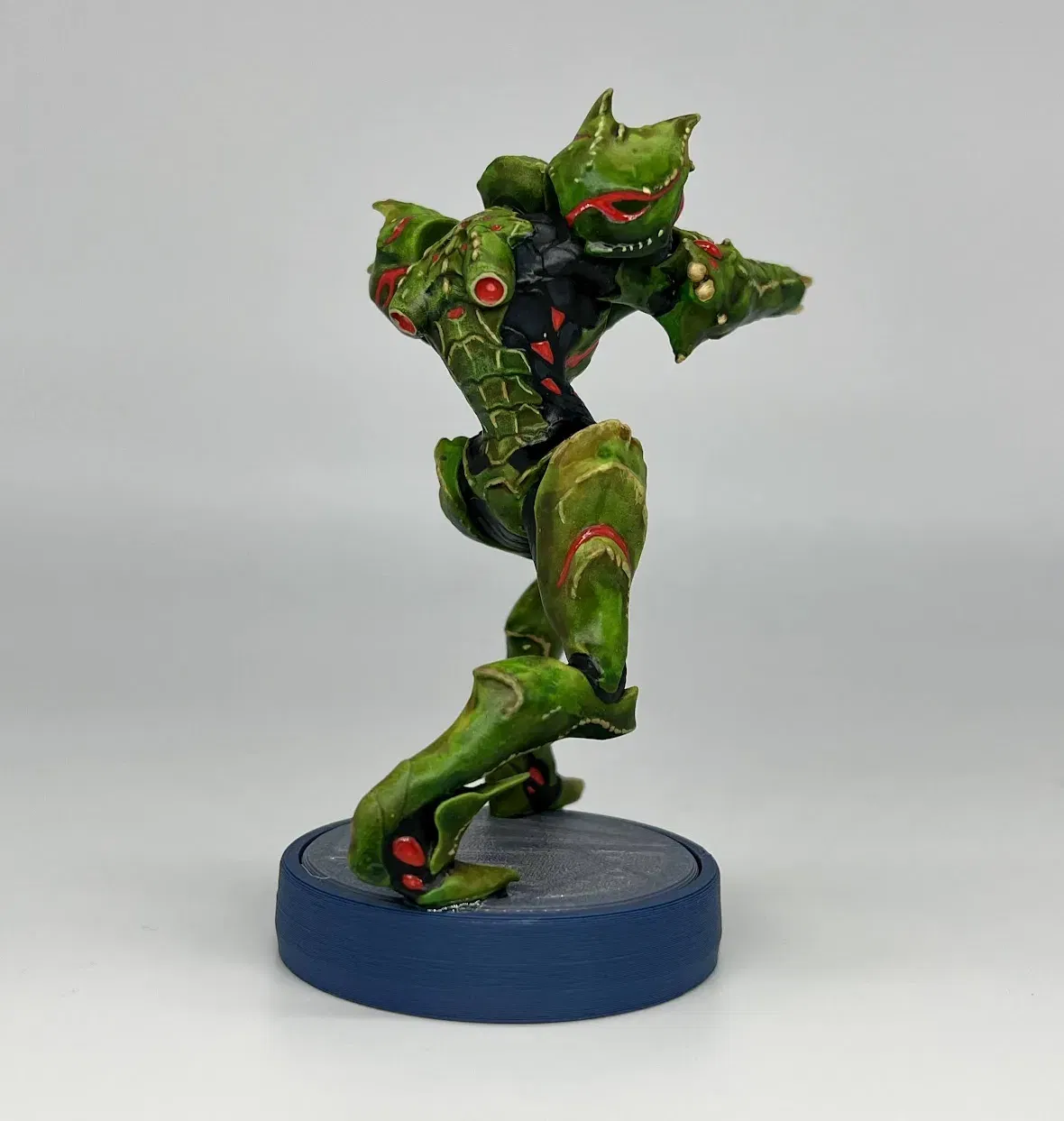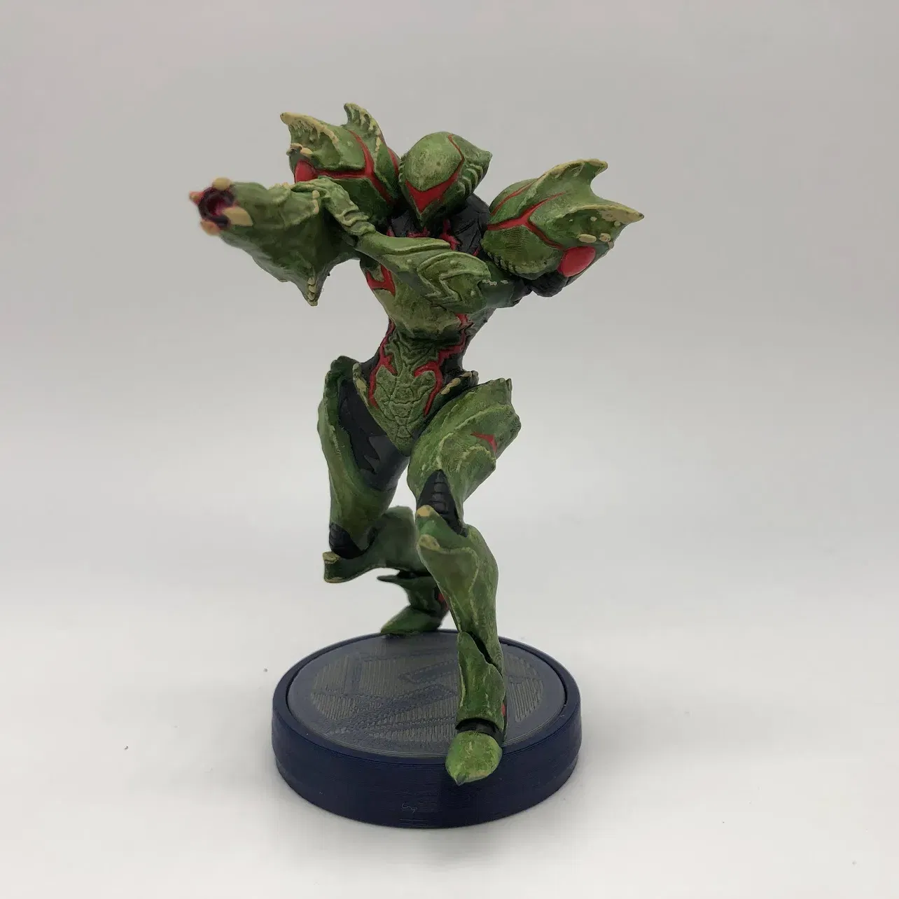 Samus Aran trong bộ đồ Metroid lấy cảm hứng từ Metroid Dread, với cơ sở kiểu Amiibo.