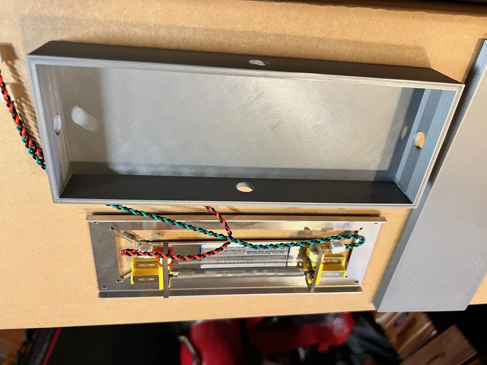 Hộp Tank Reverb Lò Xo Erica Synths Đen Bạn đã mua chiếc Reverb Lò Xo Erica Synths Đen cực kỳ tuyệt vời. Nó cho phép bạn sử dụng một reverb lò xo được gắn bên trong (được cung cấp cùng với mô-đun). Thật không may, bạn không có đủ chỗ bên trong chiếc hộp Eurorack khổng lồ của mình. THẬT BUỒN! Vì vậy, bạn làm những gì mà mọi Hum’ahn may mắn khác trong vũ trụ này làm! Bạn in một cái trên Máy in Prusa của bạn. Tank Reverb Lò Xo Erica Synths Đen (mô-đun Eurorack) đi kèm với một reverb lò xo bên trong VÀ một kết nối bên ngoài cho một tank reverb lò xo thứ hai. Các vị thần đã tốt với chúng ta, Virginia… ~~~ Nói đùa thì cũng không phải, tôi đã xây dựng cái này cho mục đích của mình. Nếu nó giúp ích cho bạn, tuyệt vời. Bạn được chào đón! Haha. Tôi đã sử dụng băng dính 3M hai mặt để dán đơn vị reverb lò xo vào trong hộp và cũng để cố định nắp. Có thêm 1mm tổng thể xung quanh đơn vị reverb lò xo, vì vậy nếu máy in của bạn có chút lệch (có thể bạn là người dị giáo và không in bằng Máy in Prusa?), nó vẫn nên vừa. Hãy nhớ: Cuộc chiến vẫn tiếp diễn mãi mãi trong tương lai tăm tối, sâu thẳm. Những thành phố lớn đang chiến tranh, và nhu cầu công nghiệp của họ không thể chờ đợi! Hãy làm phần của bạn, công dân! Hãy chứng tỏ giá trị của bạn! Quay trở lại cuộc chiến! Đừng sợ kẻ đột biến, người ngoài hành tinh, và những điều tồi tệ hơn. Đừng để một ai sống sót! Bảo vệ bản thân và đồng đội của bạn, và quay lại cuộc chiến! Thiết kế trên Tinkercad. - Làm sạch bề mặt in của bạn bằng xà phòng rửa chén (Dawn)! Tránh nâng lên và in bị cong!