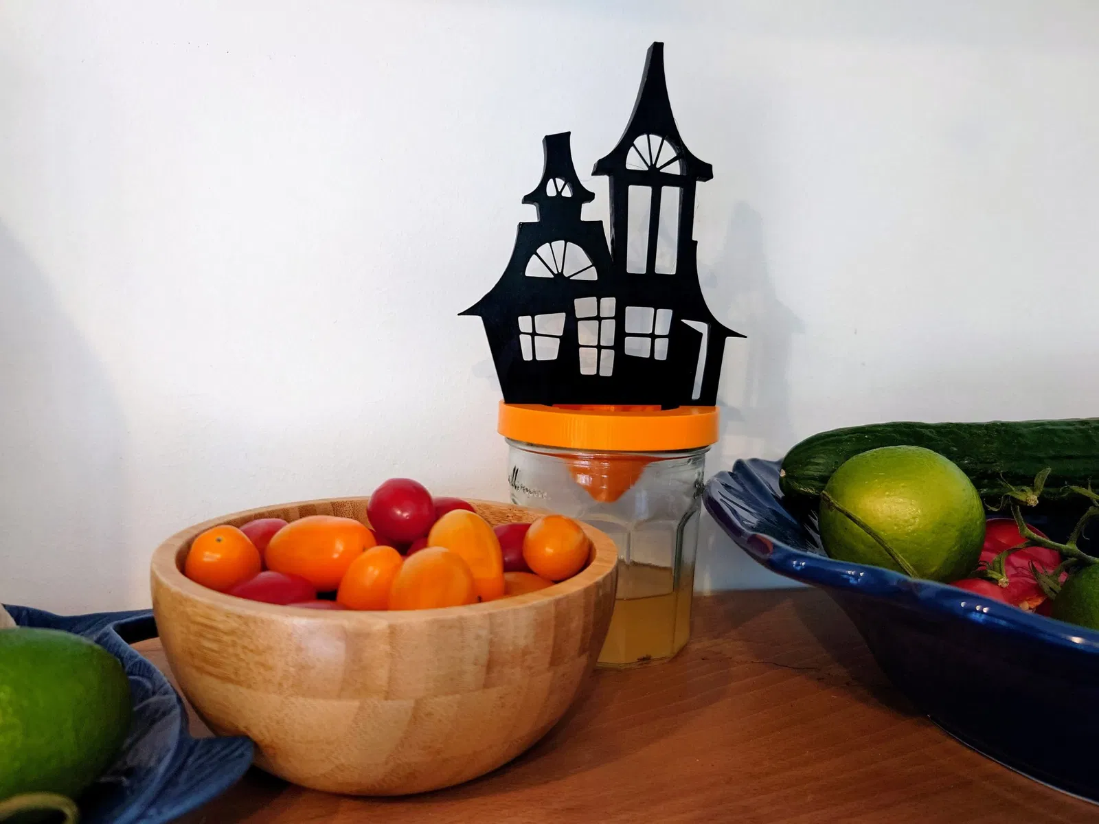 • lâu đài Grayskull hùng vĩ từ H-man Mỗi thiết kế hứa hẹn không có lối thoát cho những kẻ xâm nhập nhỏ bé khi chúng mạo hiểm bên trong. Ở trung tâm của những thiết kế này là một cái phễu được thiết kế tỉ mỉ, đảm bảo rằng trong khi ruồi trái cây có thể dễ dàng vào chỗ chết đáng sợ của chúng, chúng sẽ gặp khó khăn khi rời khỏi đó. Để làm cho cái bẫy hiệu quả, chỉ cần đổ đầy một phần ba lọ mứt Bonne Maman của bạn bằng một mồi nhử hấp dẫn như giấm táo nguyên chất. Để tăng cường hiệu quả, thêm một hoặc hai giọt xà phòng rửa chén, giúp phá vỡ sức căng bề mặt của chất lỏng, đảm bảo bất kỳ con ruồi trái cây nào tò mò cũng sẽ bị bắt nhanh chóng. Ngoài hiệu quả của nó, Fruit Fly Fright Night còn là một tuyên ngôn về tính bền vững. Hoàn hảo cho bất kỳ bếp, kho thực phẩm, hoặc khu vực ăn uống nào. Dễ in, lắp ráp, và chắc chắn sẽ là một chủ đề trò chuyện!" Cũng có một cái nắp nếu bạn không muốn làm sợ các con ruồi trái cây. Hướng Dẫn In: Tất cả các mẫu đều in mà không cần hỗ trợ, ngoại trừ đầu bí ngô. Tôi chưa in lâu đài Grayskull, nhưng tôi nghĩ nó sẽ in mà không cần hỗ trợ, nếu bạn không phiền một mặt lưng thô ráp. Sử dụng một viền nếu bạn thích, tôi thì không. Lắp Ráp Chỉ cần chèn và xoay phần trên vào nắp. Đối với đầu bí ngô, bạn sẽ cần vòng kết nối. Nếu vòng kết nối vào đầu quá chặt, chỉ cần cắt một chút bên trong đầu bí ngô bằng lưỡi cắt yêu thích của bạn. Sử dụng một giọt keo để kết nối cuống với đầu bí ngô. Tác Phẩm Gốc Đầu Bí Ngô là một phiên bản remix của một mô hình bởi MB Designs Ngôi Nhà Ma Ám là một phiên bản remix của một mô hình bởi neale Lâu Đài Grayskull là một phiên bản remix của một mô hình bởi RackhamArthur