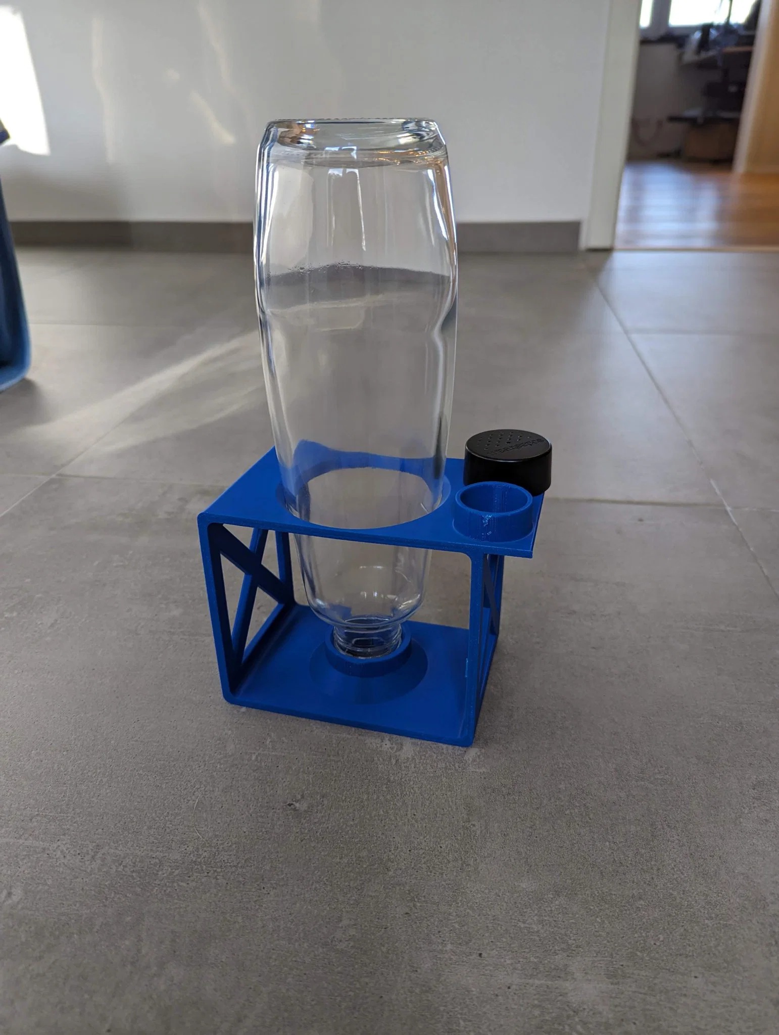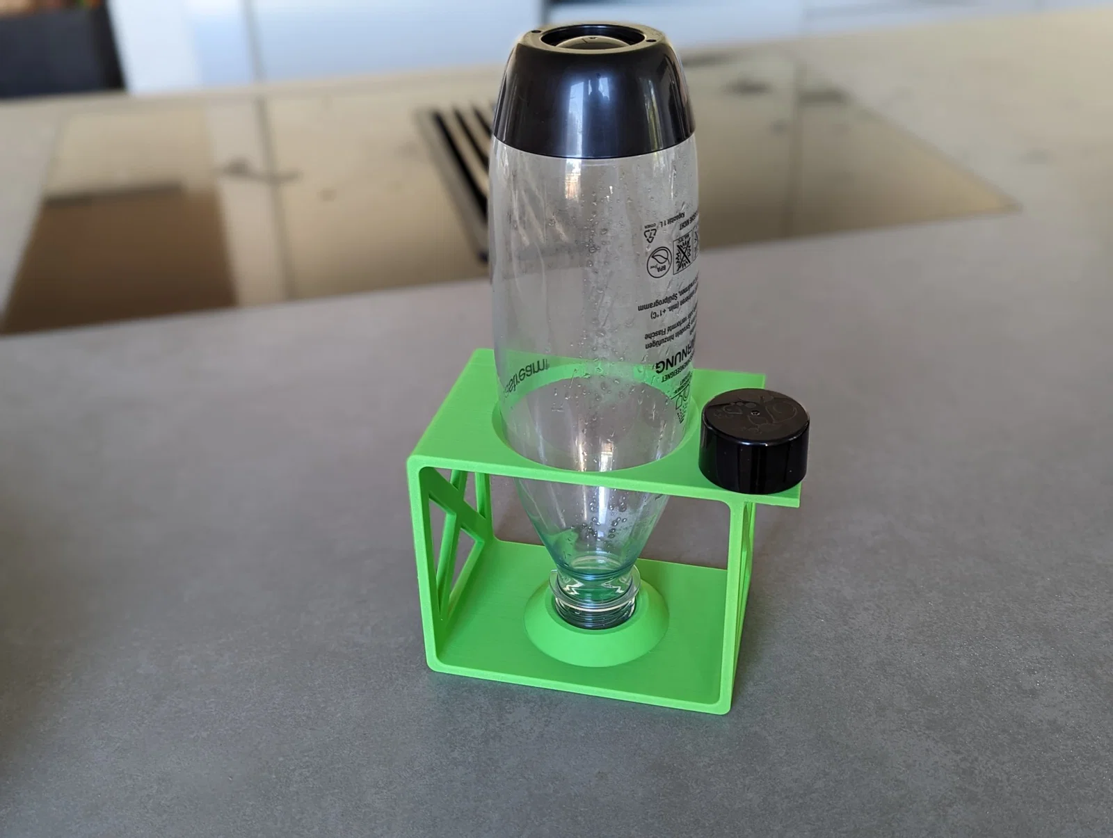 Giá đỡ chai này giúp bạn làm sạch các chai của Sodastream một cách đúng cách. Nó cũng giúp việc cho chúng vào máy rửa rất dễ dàng. Nắp sẽ được làm sạch từ phía dưới và sẽ không bay qua máy.