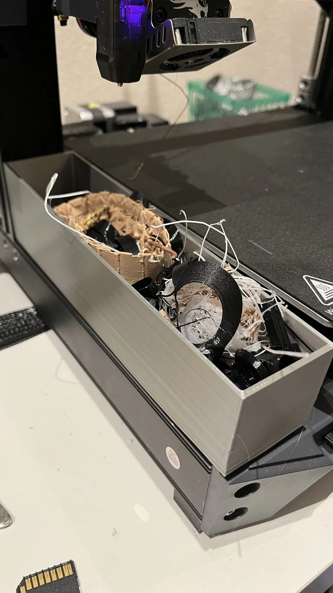 Đây chỉ là một thùng rác đơn giản được thiết kế để vừa vặn ngay bên cạnh mặt in của máy in Ender 3 S1, như vậy bạn sẽ có một nơi thuận tiện cho tất cả những mảnh vụn không mong muốn đi kèm với việc in ấn. Tiết kiệm rất nhiều thời gian và không gian, và cho đến nay nó đã hoạt động rất tốt với tôi! Tôi hy vọng điều này có thể giúp một số bạn tránh được cơn đau đầu khi cố gắng dọn dẹp những mảnh vụn của filament.