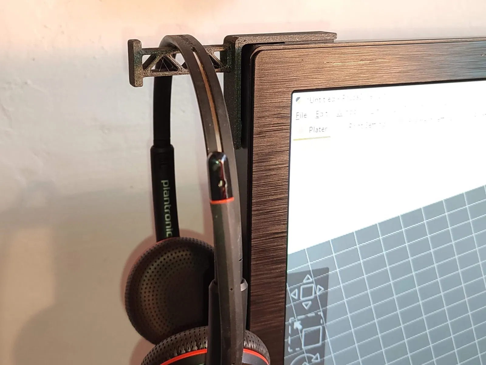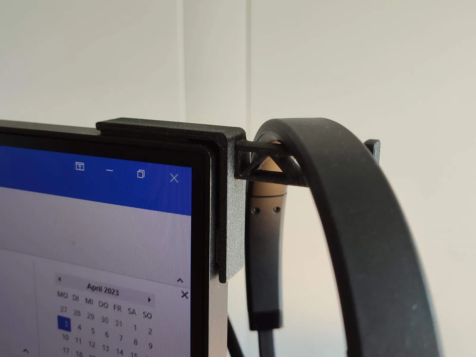 Giá đỡ tai nghe đa năng để gắn vào góc màn hình của bạn.\_(ツ)_/ Gắn nó bằng băng dính hai mặt. Tôi đã sử dụng 3M VHB.