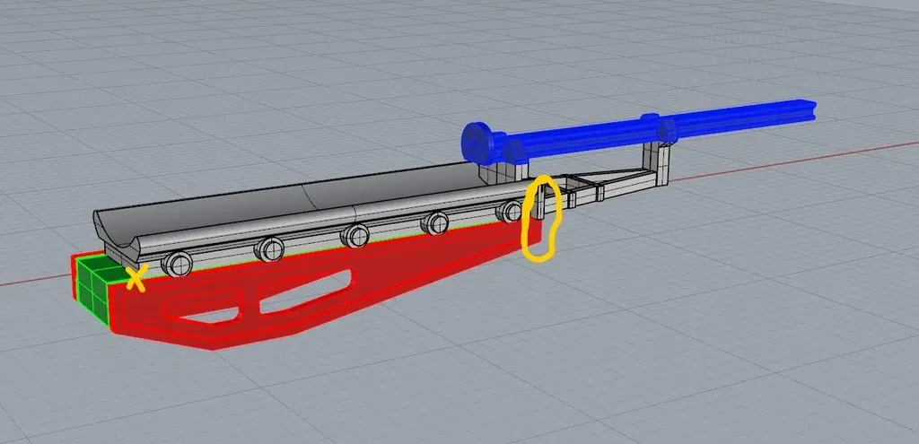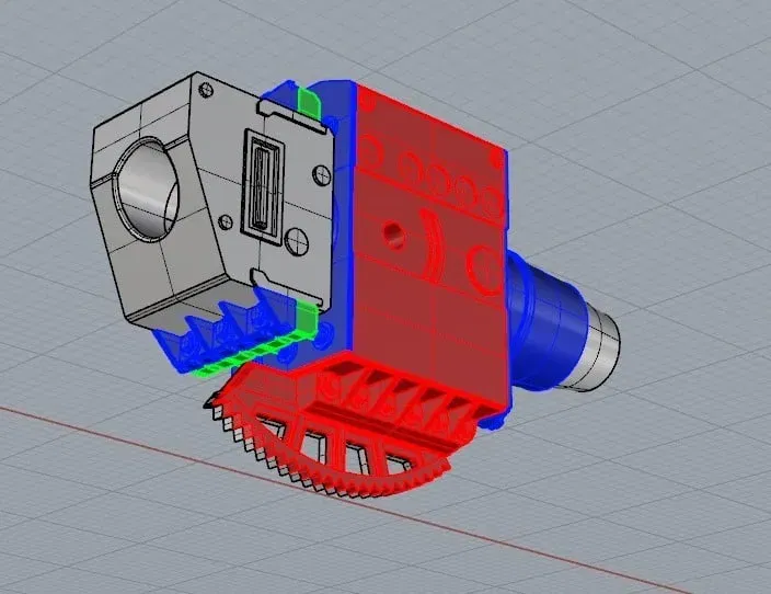 Nếu lắp ráp đúng cách, chốt phải được gỡ bỏ để điều chỉnh góc súng. Chốt giữ các răng sát vào các răng trong thân. Các tệp in dễ dàng tiêu chuẩn có một thanh chéo phải được cắt ra để cho phép lắp đặt súng cối. Nó có mặt để chống cong vênh trong quá trình in và lắp ráp. thanh này đã được loại bỏ trong phiên bản nhựa.