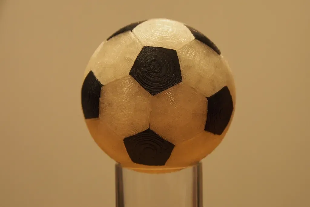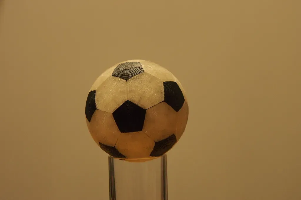 In 20 mảnh hình lục giác và 12 mảnh hình ngũ giác - sau đó dán chúng lại với nhau.