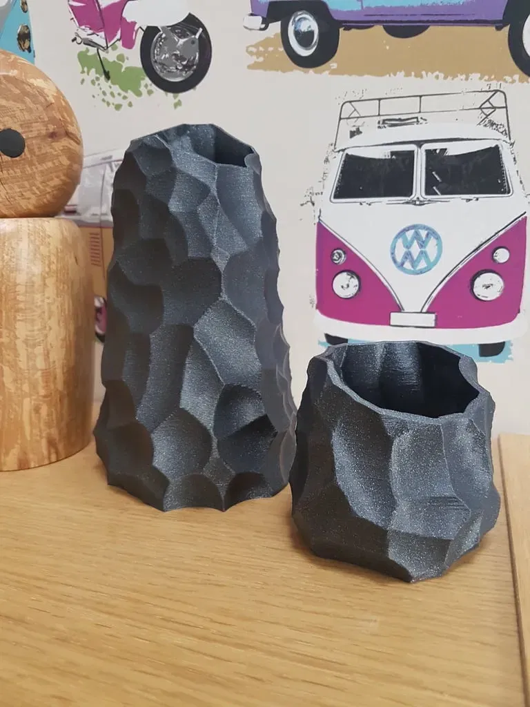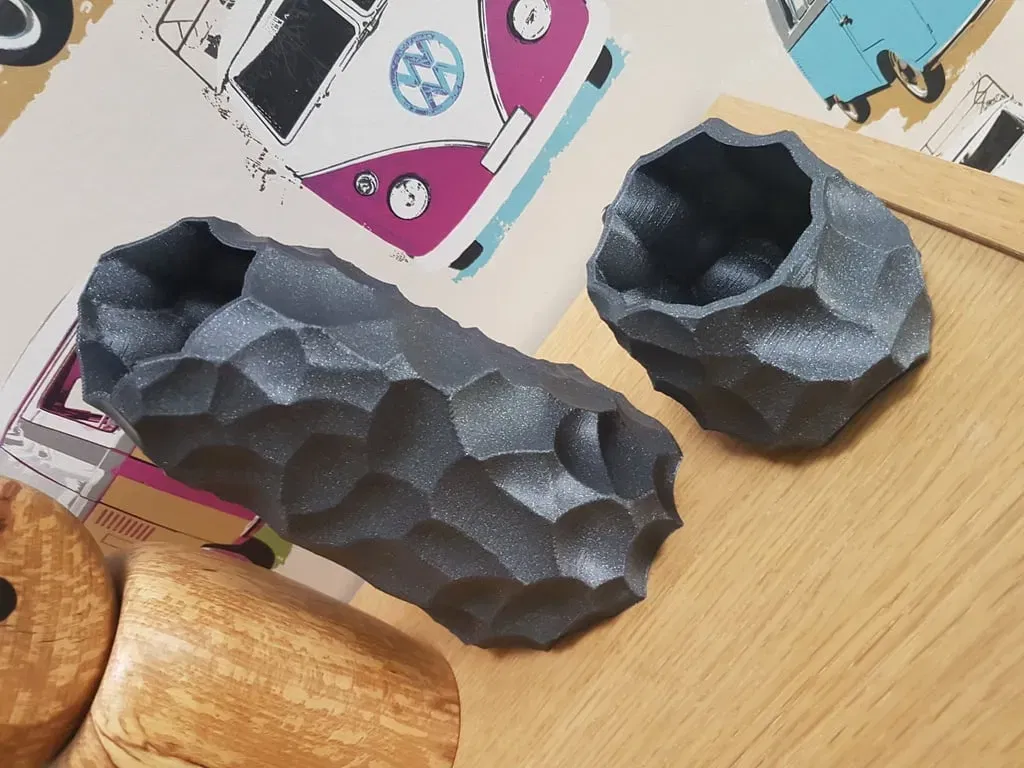 Một cặp bình tôi thiết kế để trông giống như đá được chạm khắc một chút. Được thiết kế trong VR bên trong môi trường Oculus. Màu sắc hiển thị ở đây…