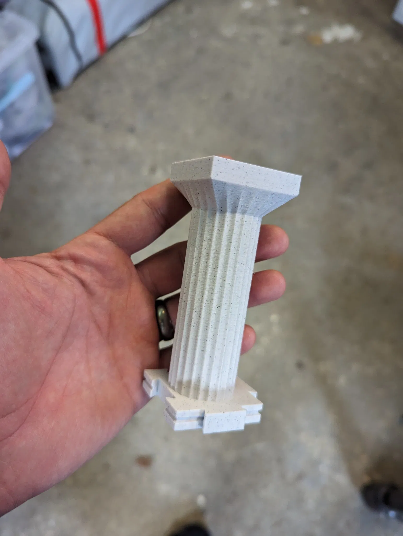 Các cột này khớp với nhau thành một hàng cột đẹp mắt. Sử dụng một chút dây 1.75mm để khóa chúng lại với nhau. Có một lỗ ở đáy, vì vậy nếu bạn muốn, bạn có thể đổ đất vào và sử dụng nó như một chậu cây thay thế.