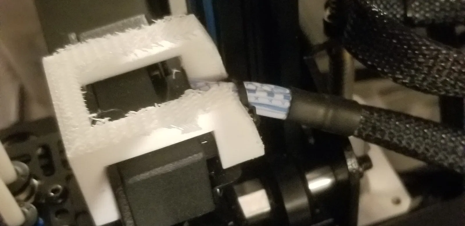 Cáp kết nối với cụm đầu in của máy in GEEETECH A20M của tôi có thói quen xê dịch ra ngoài. Đặc biệt nếu nó cần phải đi hết chiều rộng của trục X. Hoặc thậm chí nhiều hơn 70% chiều rộng. Vì vậy, tôi đã thiết kế cái kẹp này để vừa vặn bên trên nhằm giúp giữ nó ở vị trí. Không quan trọng tôi đã siết chặt các vít như thế nào. Có lẽ một ít locktite sẽ hiệu quả nhưng tôi đã chọn phương pháp này thay vào đó.