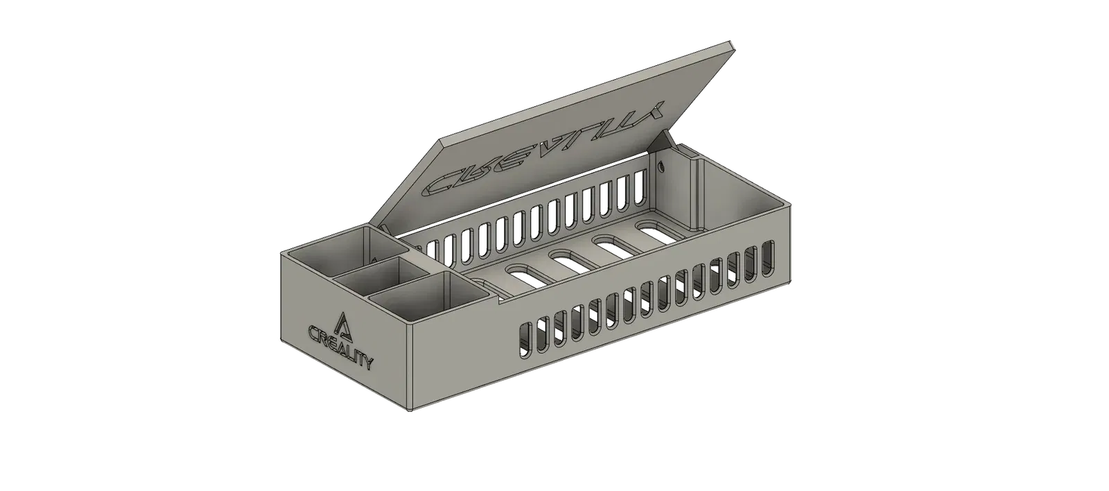 Thiết kế thông minh này có hai ngăn nhỏ ở hai bên, hoàn hảo để lưu trữ các phụ kiện in 3D cần thiết của bạn. Giữ cho các đầu phun, ốc vít và bit được tổ chức gọn gàng để dễ dàng truy cập, giúp mỗi phiên in trở nên dễ dàng hơn.