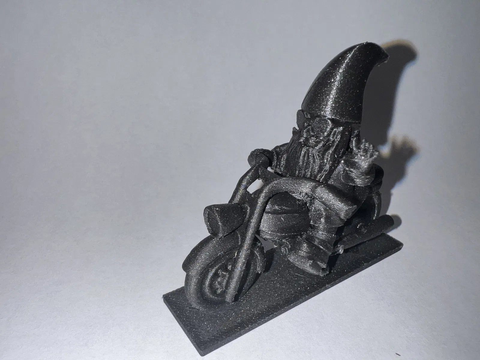 Tượng gnome vườn sửa chữa trên xe đạp chắc chắn