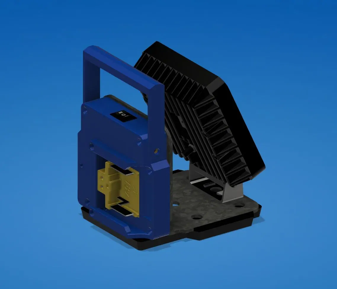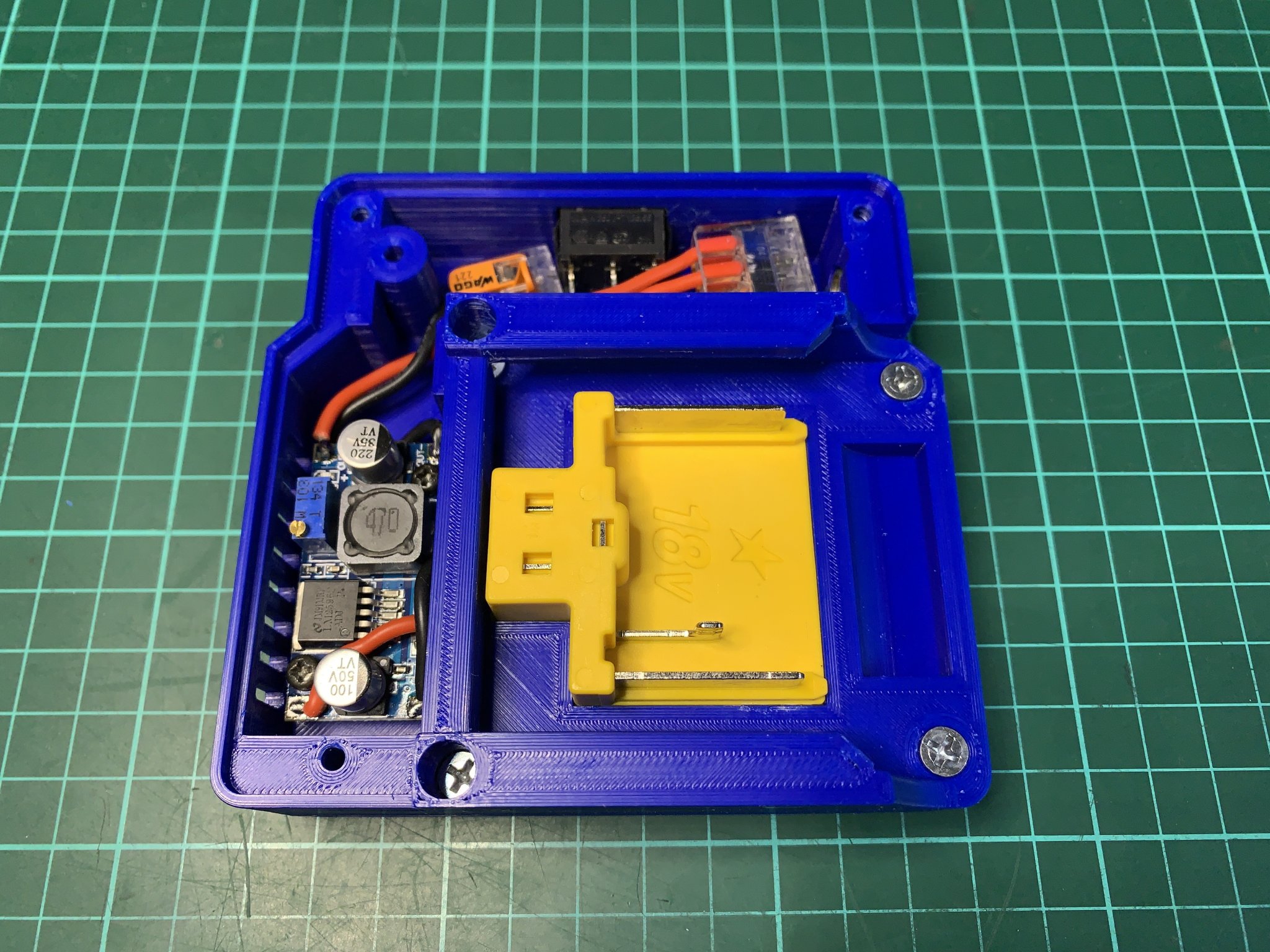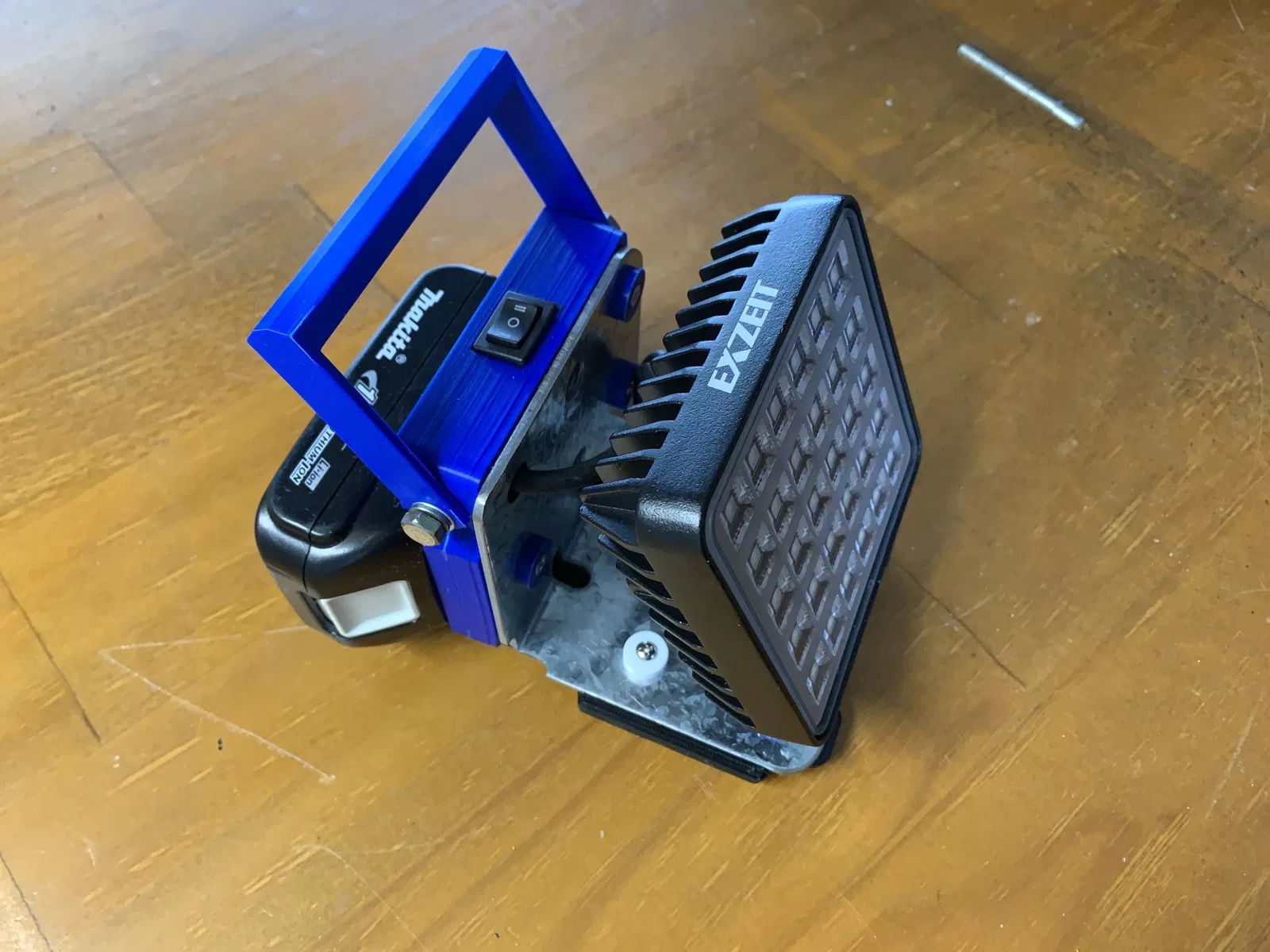 Để làm cho đèn làm việc di động, tôi đã kết hợp nó với một pin Makita 18V LxT. Thiết kế là mô-đun, vì vậy nếu bạn khéo tay, bạn có thể thay đổi giá đỡ pin cho hệ sinh thái pin mà bạn ưa thích.