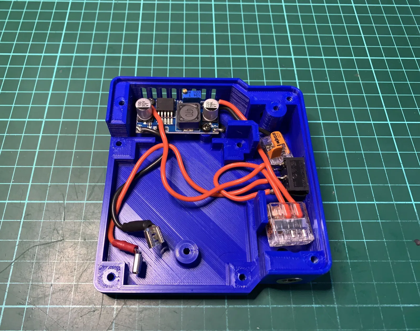 Đèn làm việc rất sáng, vì vậy tôi đã bao gồm chế độ độ sáng cao và thấp. Để cung cấp chế độ độ sáng thấp, tôi đã bao gồm một bộ biến tần DC-DC LM2596 với điện áp đầu ra được điều chỉnh khoảng 11V. Công tắc nguồn có 3 vị trí, Bật-Tắt-Bật, chuyển đổi giữa độ sáng cao, tắt và độ sáng thấp.