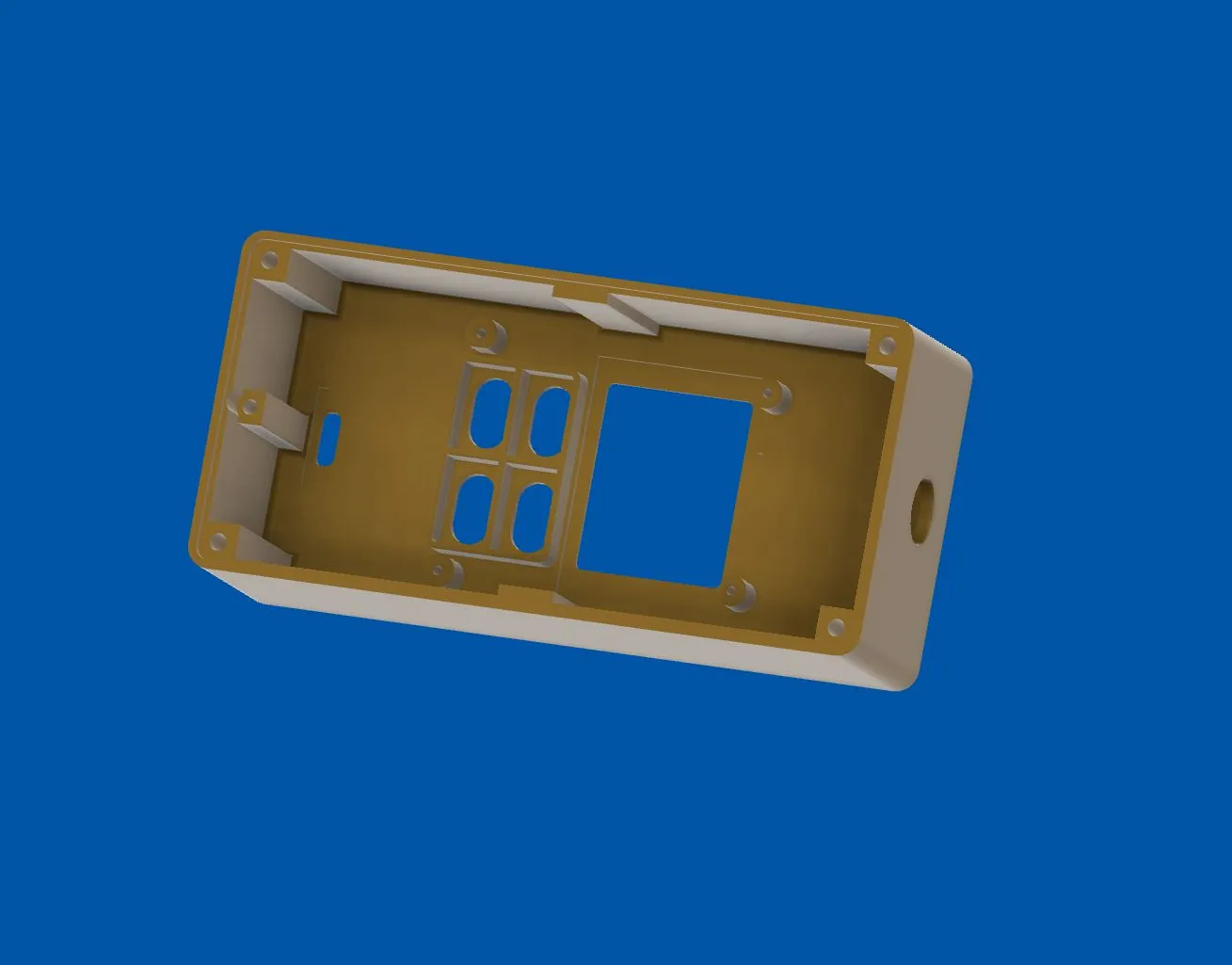 Hộp đồng hồ đã được sửa đổi dự định sẽ được dán vào bên hông hộp khô của tôi bằng băng dính hai mặt. Hộp khô cần một lỗ nhỏ để các nút và ổ cắm USB C có thể được tiếp cận từ bên ngoài.
