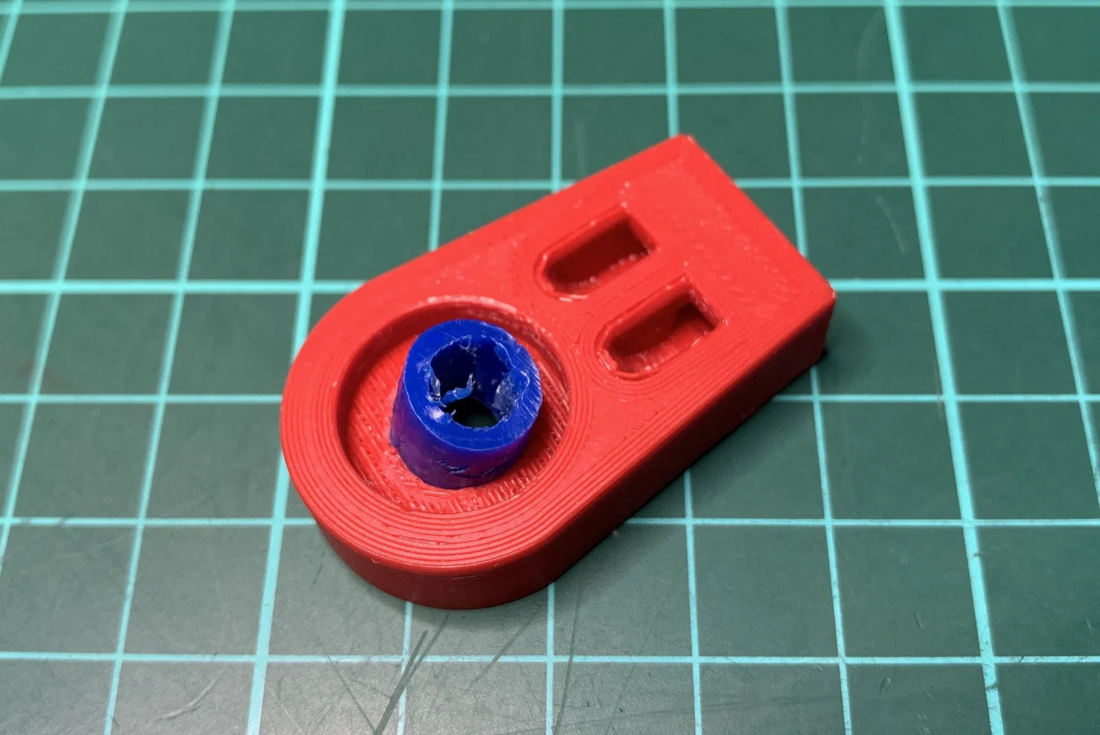Trong quá trình sử dụng bình thường, ma sát làm nóng vít kim loại giữ giá đỡ ở vị trí. Vít kim loại nóng đủ để nâng nhiệt độ của PETG tiếp xúc với nó lên trên "nhiệt độ kính" của nó và sẽ bị biến dạng, cuối cùng sẽ thất bại.