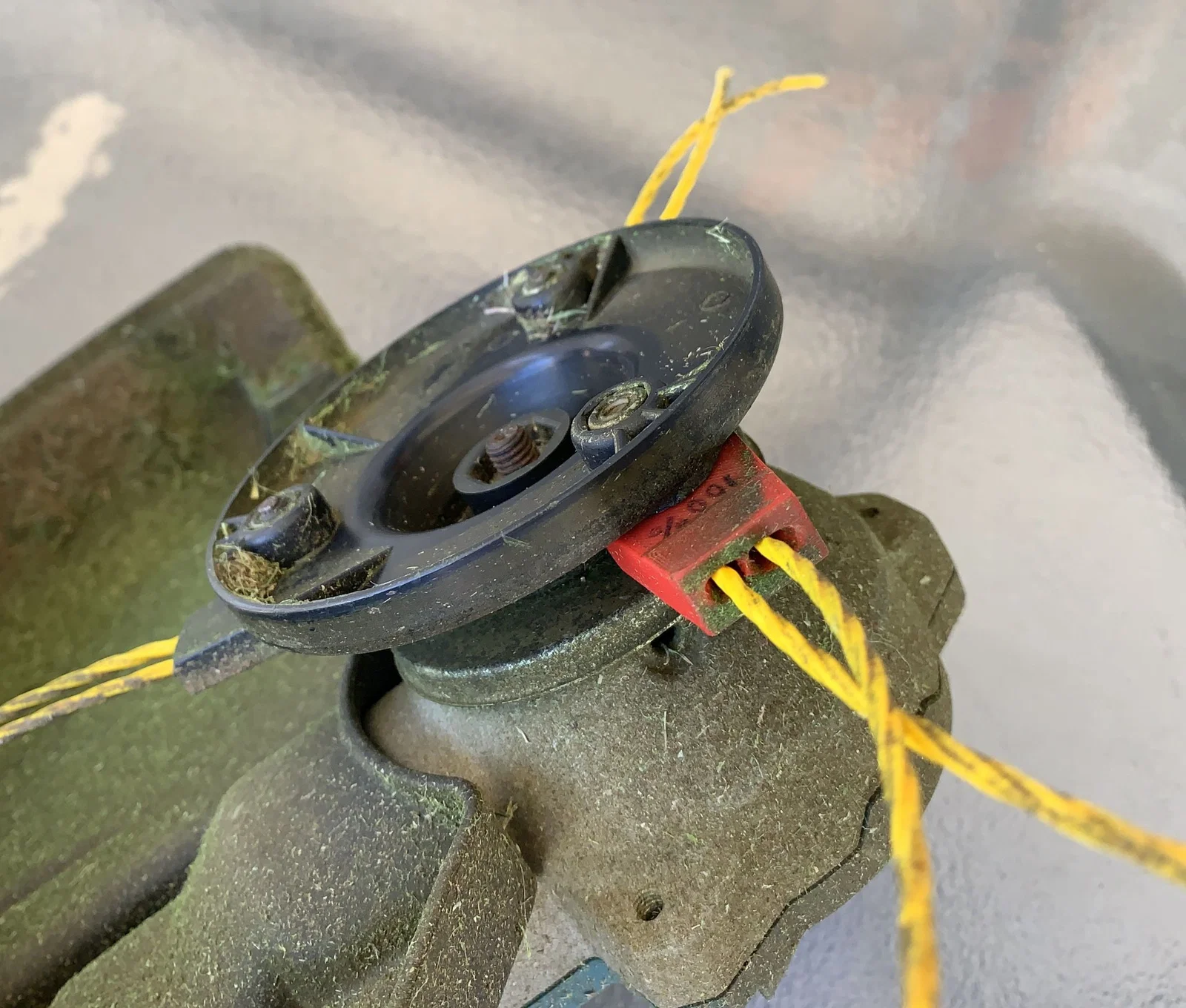 Máy cắt cỏ của tôi có một đầu gắn của bên thứ ba. Tôi thích một đầu cố định hơn là phương pháp cuộn dây ban đầu. Tôi thường thấy rằng sợi cước bị đứt ở lỗ cuộn, điều này có nghĩa là phải mở cuộn để xỏ lại trước khi tôi có thể tiếp tục công việc cắt cỏ của mình.