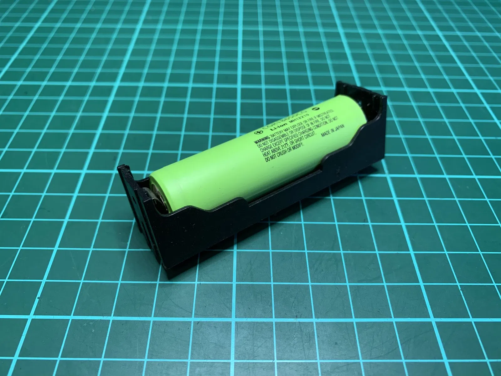 Dưới đây là mô hình 3D của một pin 18650 khác và một giá đỡ pin đơn. Pin và giá đỡ được mô phỏng độc lập và có thể được chọn riêng lẻ. Giá đỡ này có hai bên mở để bạn có thể đưa ngón tay vào pin để dễ dàng tháo ra.