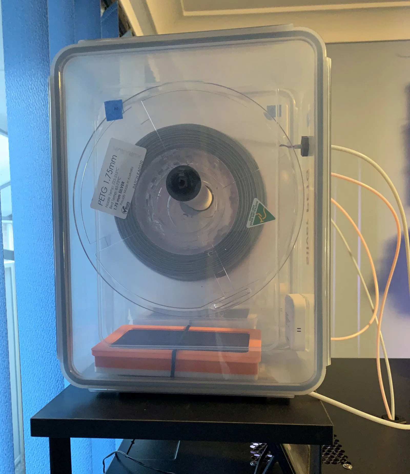 Cách tiếp cận hộp khô riêng lẻ cho phép tôi tùy chỉnh mức độ mà tôi có thể duy trì các mức độ ẩm của từng cuộn. Filament Nylon của tôi được giữ ở mức độ ẩm dưới 10% trong khi PETG được duy trì ở mức độ ẩm dưới 20%.