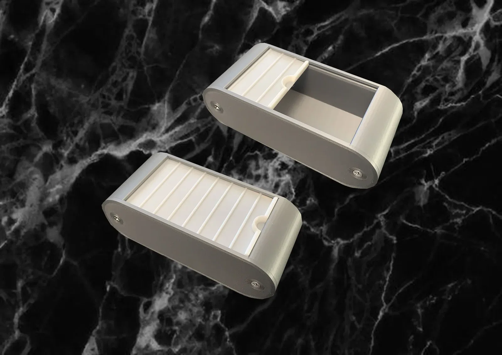 Đây là thiết kế 3D của tôi cho hộp để in 3D. Thiết kế bao gồm 3 phần, đáy, một tường bên và nắp trượt. Kích thước bên trong của hộp: 100 x 60 x 37.5mm. Các phần được giữ lại với nhau bằng hai ốc vít tự khoan 6G (3.5mm) x 15mm được lắp chìm.