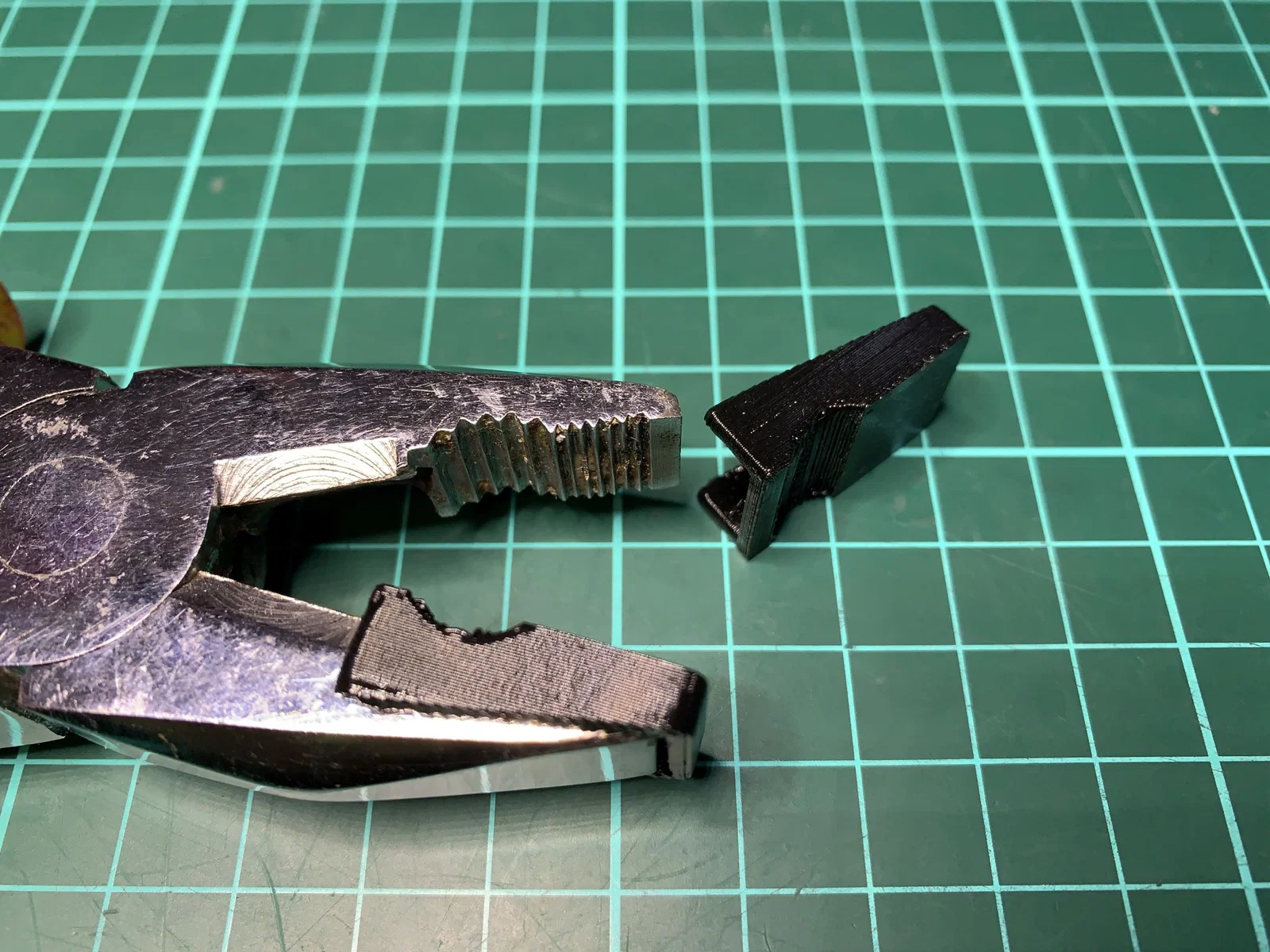 Như nhiều người khác, tôi siết chặt hoặc nới lỏng các vật thể bằng kìm của mình. Có những lúc tôi không muốn vật thể bị để lại dấu vết từ sự nắm của kìm hoặc "răng". Để làm mềm sự nắm của kìm, tôi đã thiết kế riêng các tay cầm mềm có thể tháo rời phù hợp với hàm kìm.