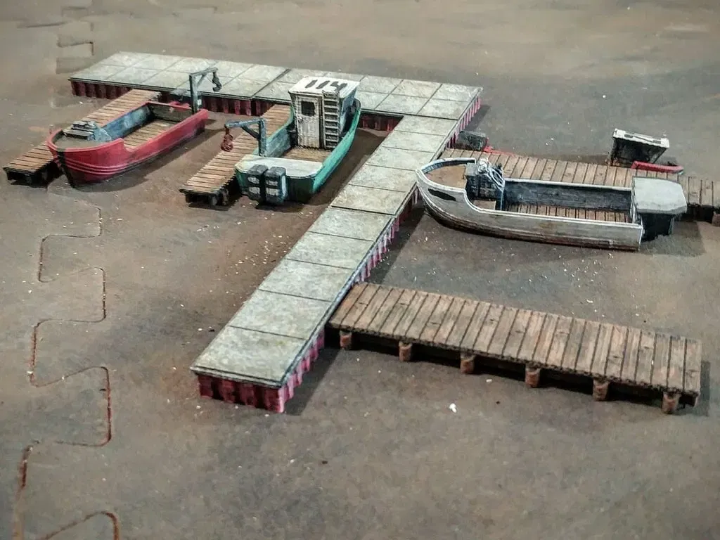 Một bộ sưu tập các bến tàu bằng bê tông và gỗ có kiểu dáng hiện đại cho trò chơi ở tỷ lệ 1/100 15mm. Những bến tàu này phù hợp ở những nơi có sóng triều thấp/không có, chủ yếu vì những bến tàu có khớp nối tồn tại cho những khu vực có thủy triều cao rất khó để làm cho dễ dàng/nhanh chóng in. Những bến tàu bằng bê tông có thể được sử dụng cho các bến tàu nổi với sự bổ sung của các cọc thẳng đứng và vòng đệm.