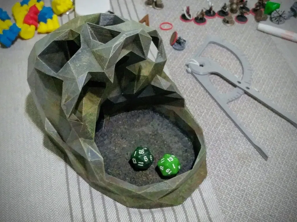 Một phiên bản low-poly của tháp xúc xắc hình sọ, không gian âm được sử dụng để tạo trọng lượng và vật liệu giảm âm. Không cần hỗ trợ. Cái này được sơn với kiểu dáng đá bẩn, nhưng bạn có thể dễ dàng sử dụng nó cho một phong cách neon-cyberpunk hơn. Tôi nghĩ bê tông với graffiti cũng sẽ trông đẹp.