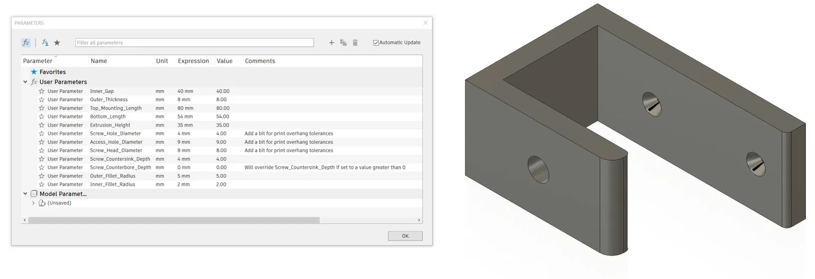 Kích thước có thể được điều chỉnh trong Fusion 360. Nó phù hợp cho máy tính xách tay và bất cứ thứ gì khác phẳng như máy tính xách tay.