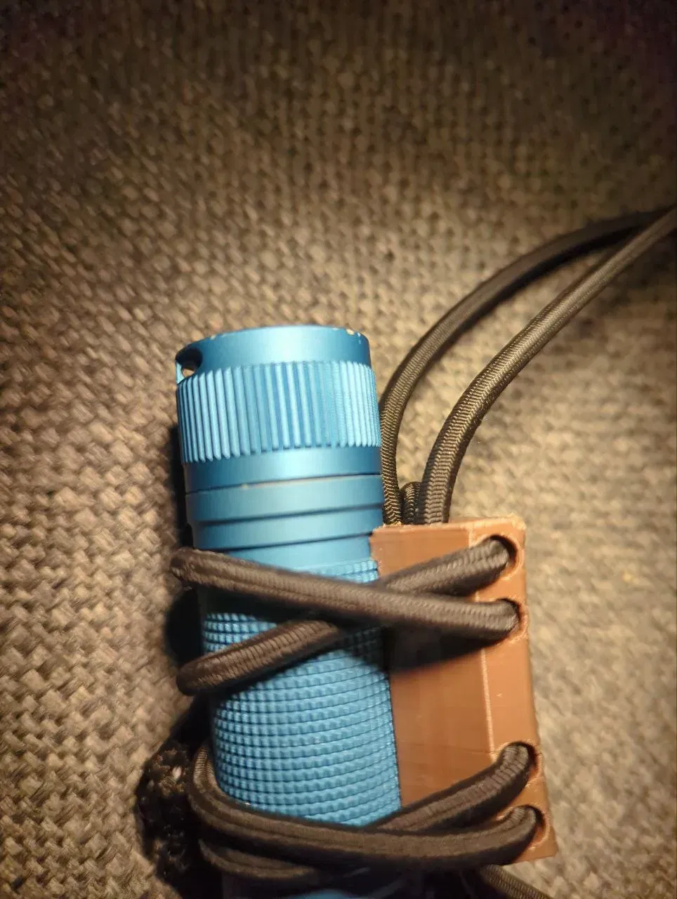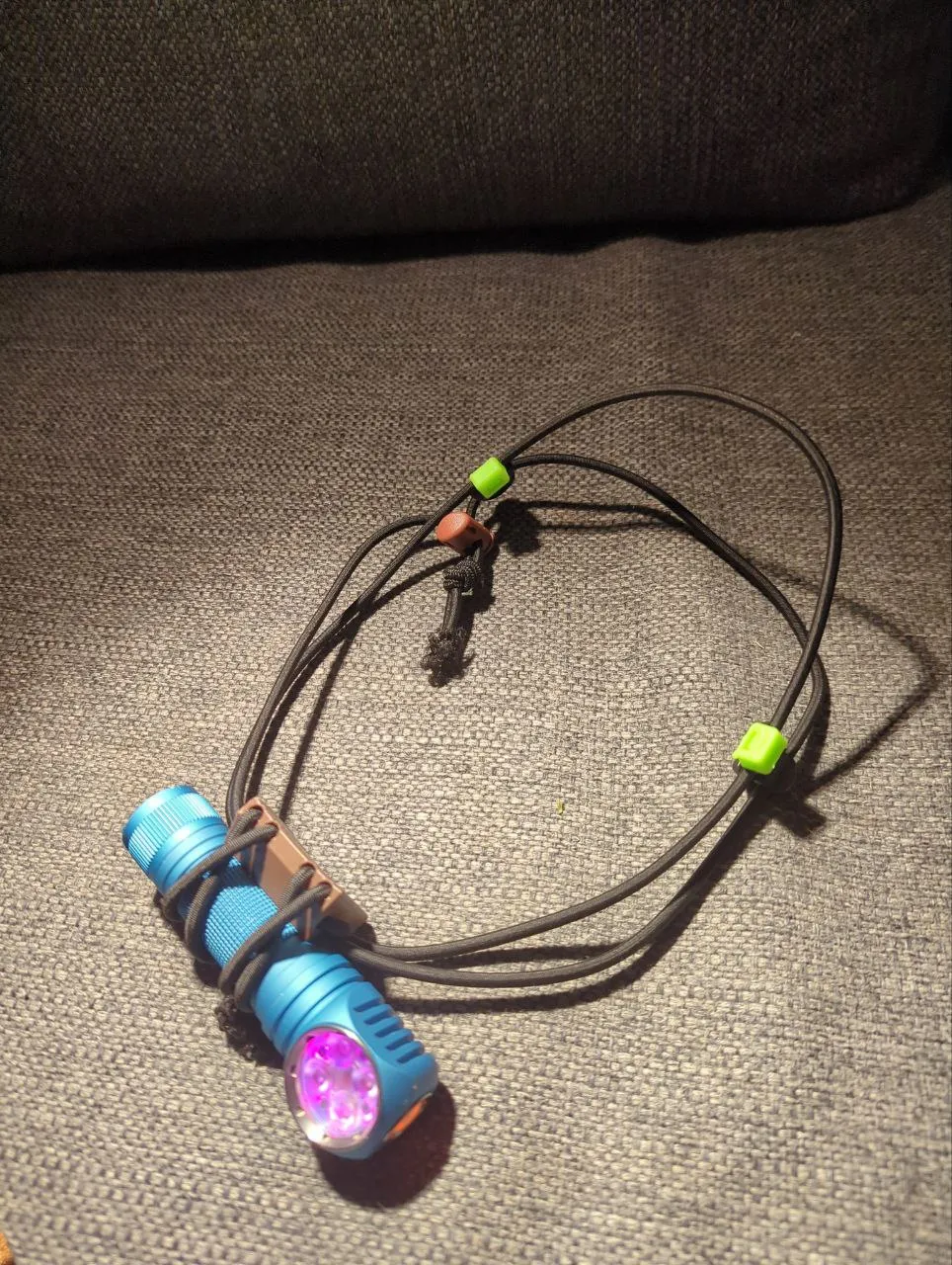 ... hoặc bất kỳ 18650 D-series nói chung. Sử dụng dây bungee 4 mm để giữ ánh sáng tại chỗ, cũng như cho băng đô.