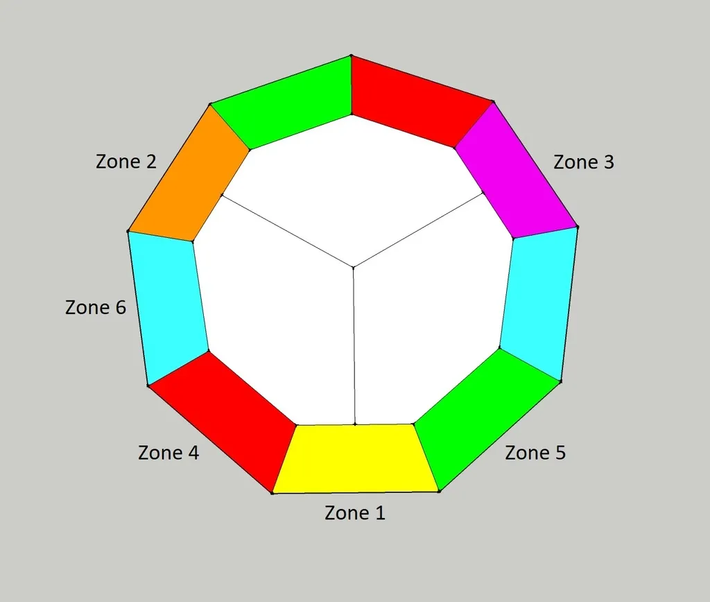 Tôi đã nối đèn LED wormhole ở 6 khu vực khác nhau (xem hình ảnh "Khu vực Nối dây Wormhole") để tạo hiệu ứng ao sự kiện trên tường.