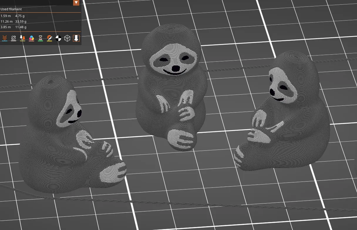 Đây là một bản in ba màu đa sắc cho MMU của bạn về một con lười dễ thương đang ngồi, có thể trên một cái cây, với chân cuộn lại và tay cuộn lên. Tệp .3mf đã được sơn sẵn với ba màu mà bạn có thể sử dụng. Bạn có thể xem xét một con lười màu nâu hoặc một con lười màu xám, hoặc thực sự bất kỳ màu nào. Mắt và mũi là màu đen và cơ thể có màu tối hơn trong khi mặt/tay/chân có màu sáng hơn.