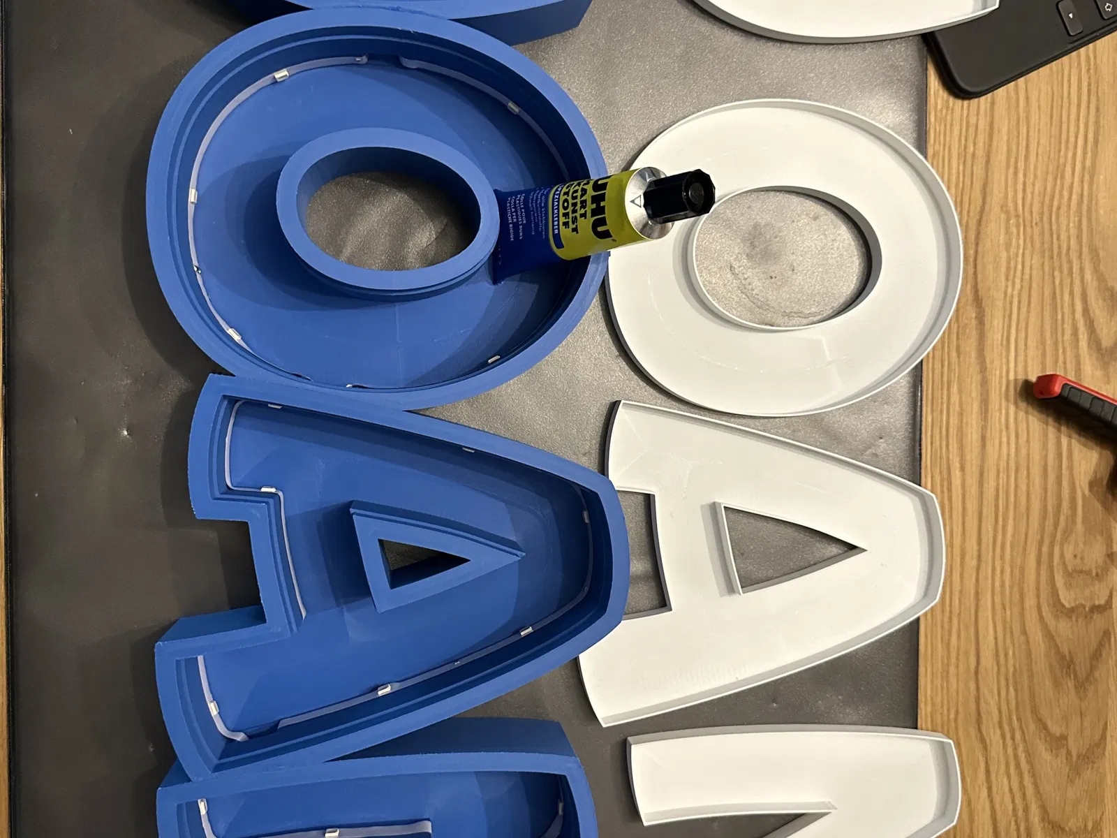 Joan như một đèn tên LED có thể in. In từng chữ cái riêng lẻ, để dán cùng với cáp tổng thể