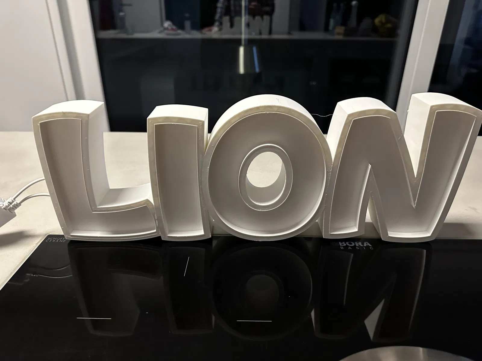 Sư tử như một đèn tên LED có thể in. In từng chữ cái riêng lẻ, để dán cùng với cáp tổng thể