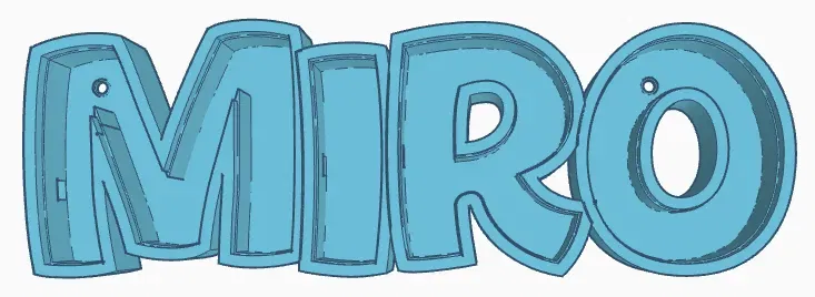Miro như một đèn tên LED có thể in. In từng chữ cái riêng lẻ, để dán cùng với cáp tổng thể