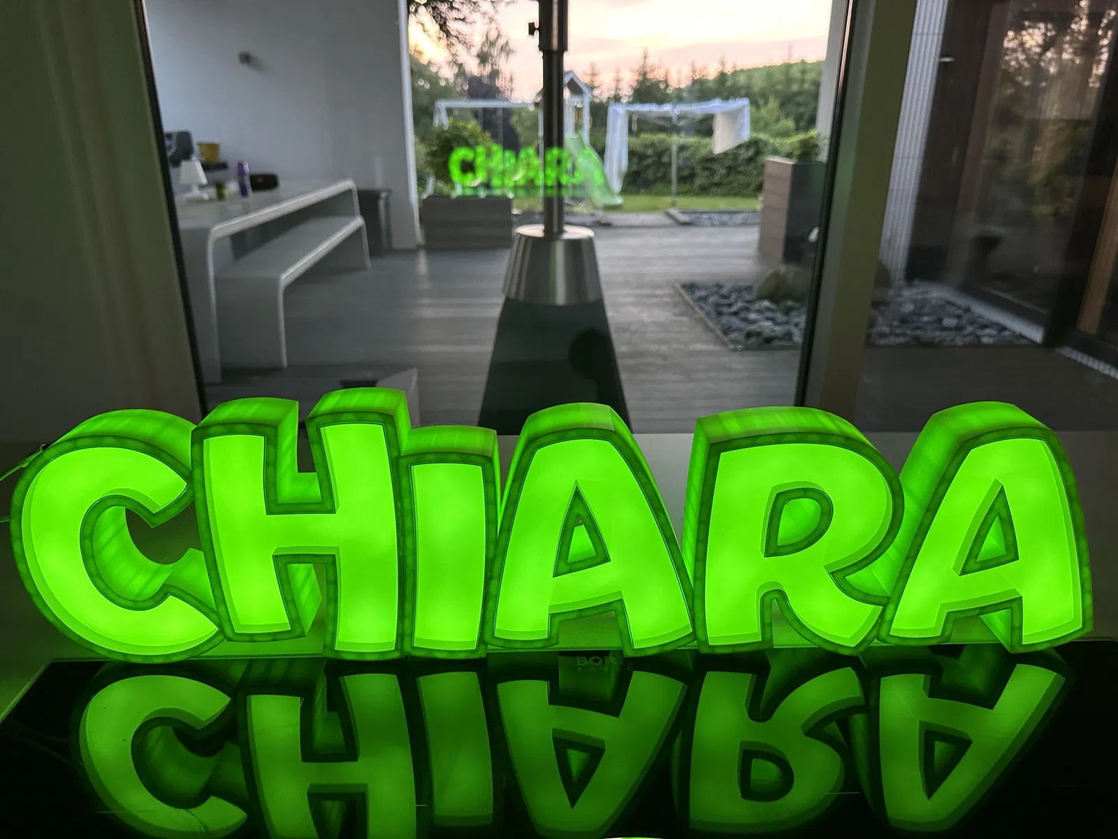 “CHIARA” như một đèn LED tên có thể in được.